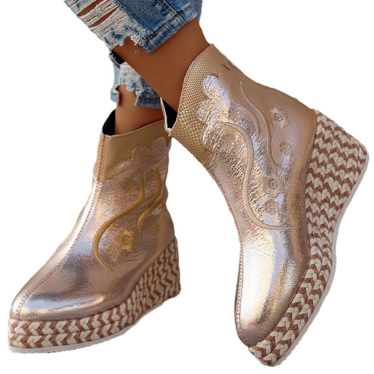 Autumn And Winter Thick Bottom Wedge Embroidered Retro Leisure Boots