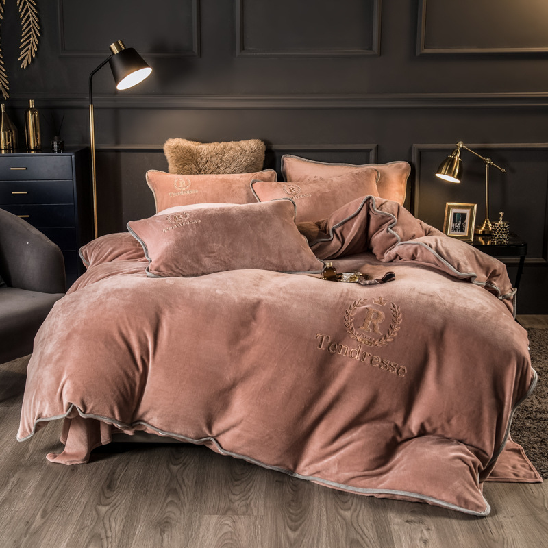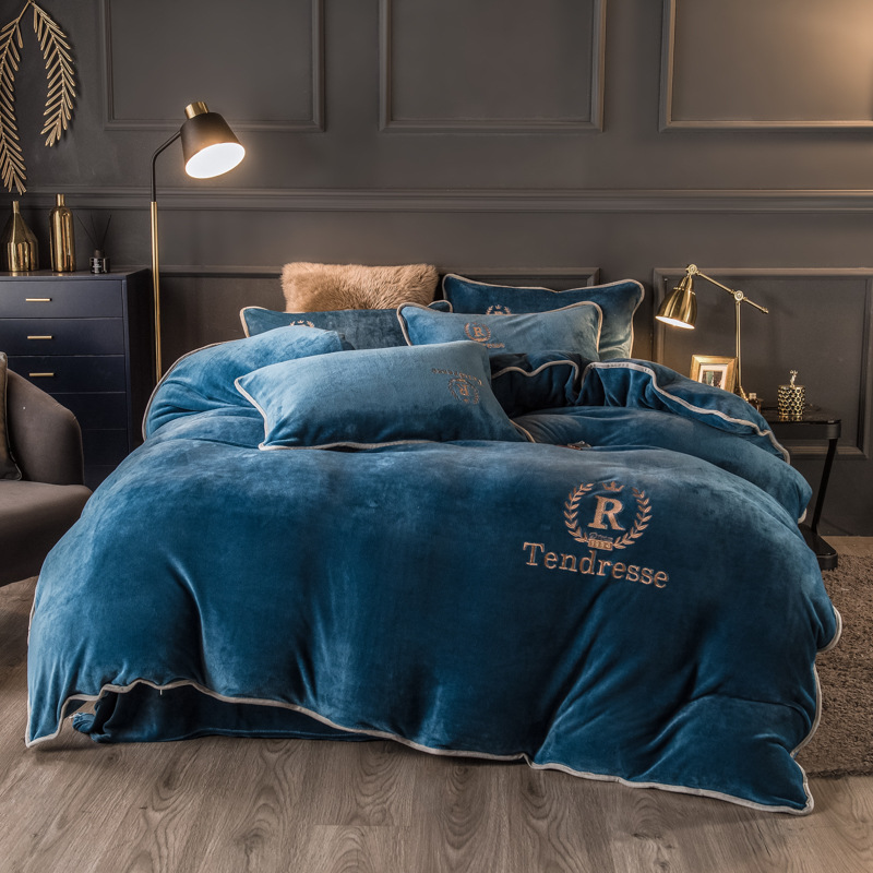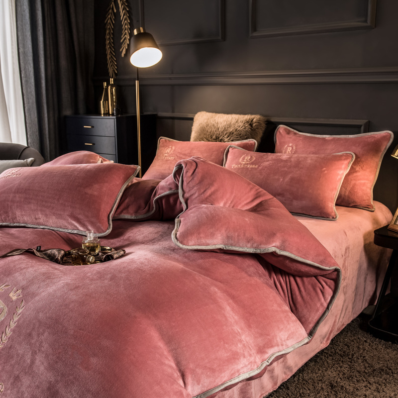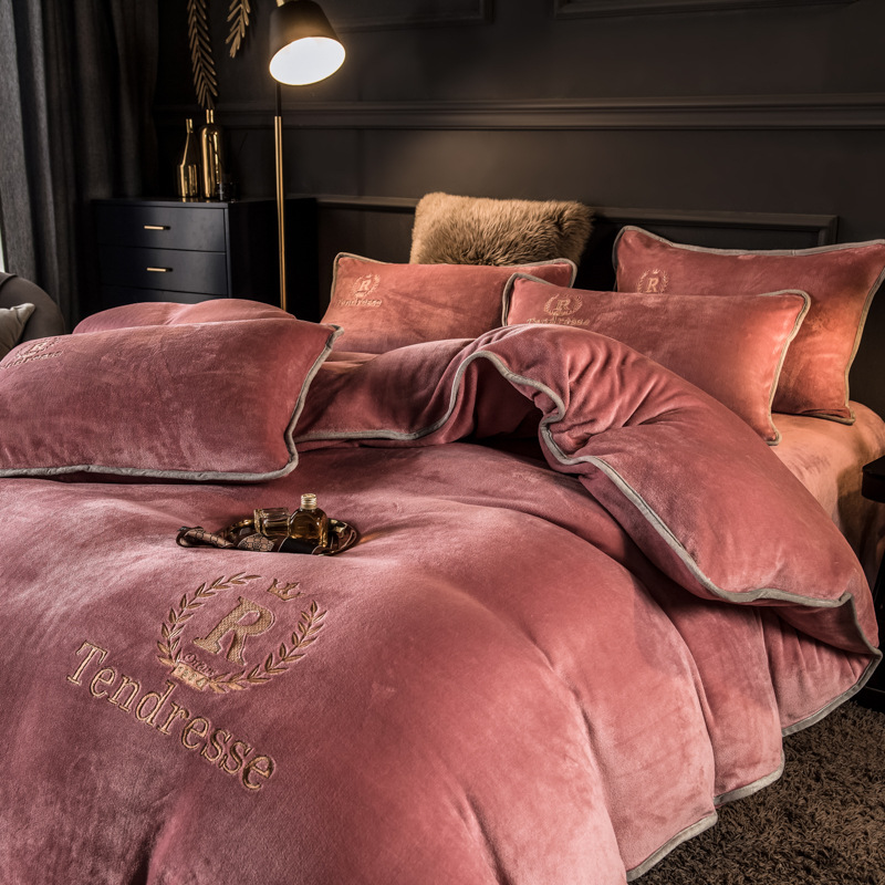 Autumn And Winter Thick Fleece Pure Embroidery Four-piece Quilt Cover Bed Sheet