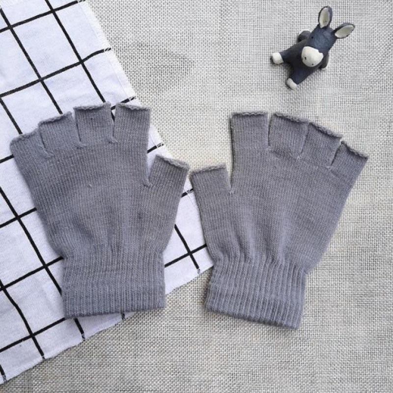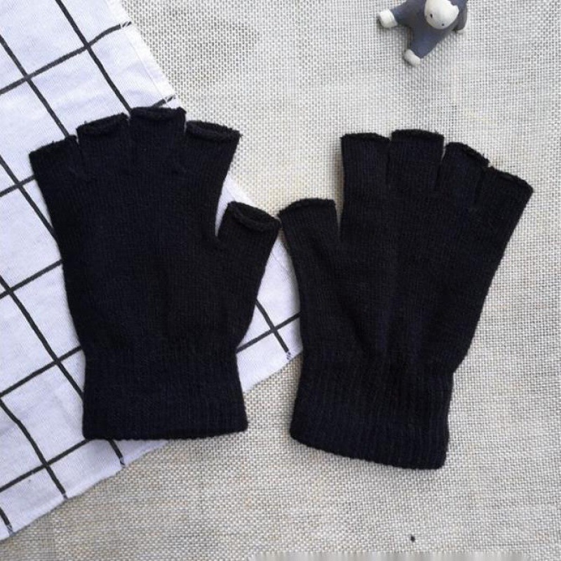 Autumn And Winter Thin Knitted Half Finger Gloves Adult Riding Cold-proof
