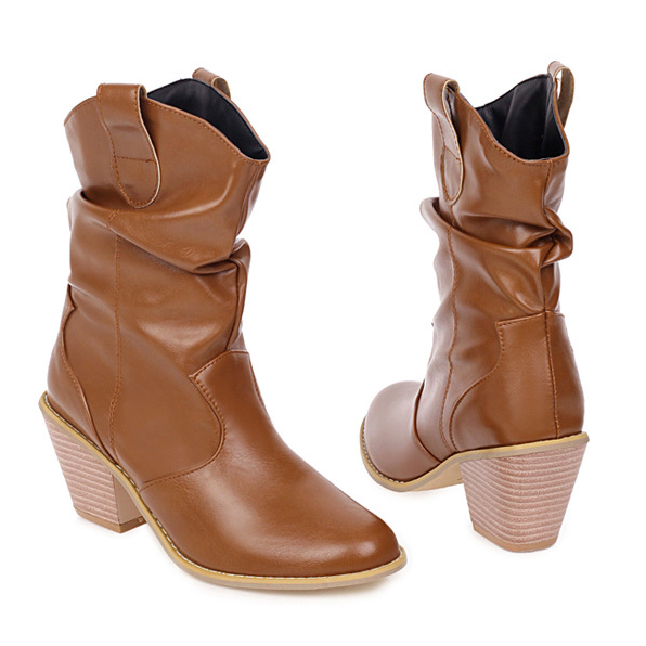 Autumn And Winter Wood Grain Thick High-heeled Women's Boots