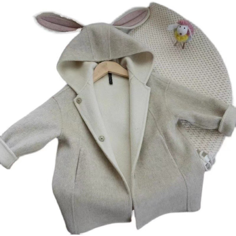 Color: Milky White rabbit ears woolen coat