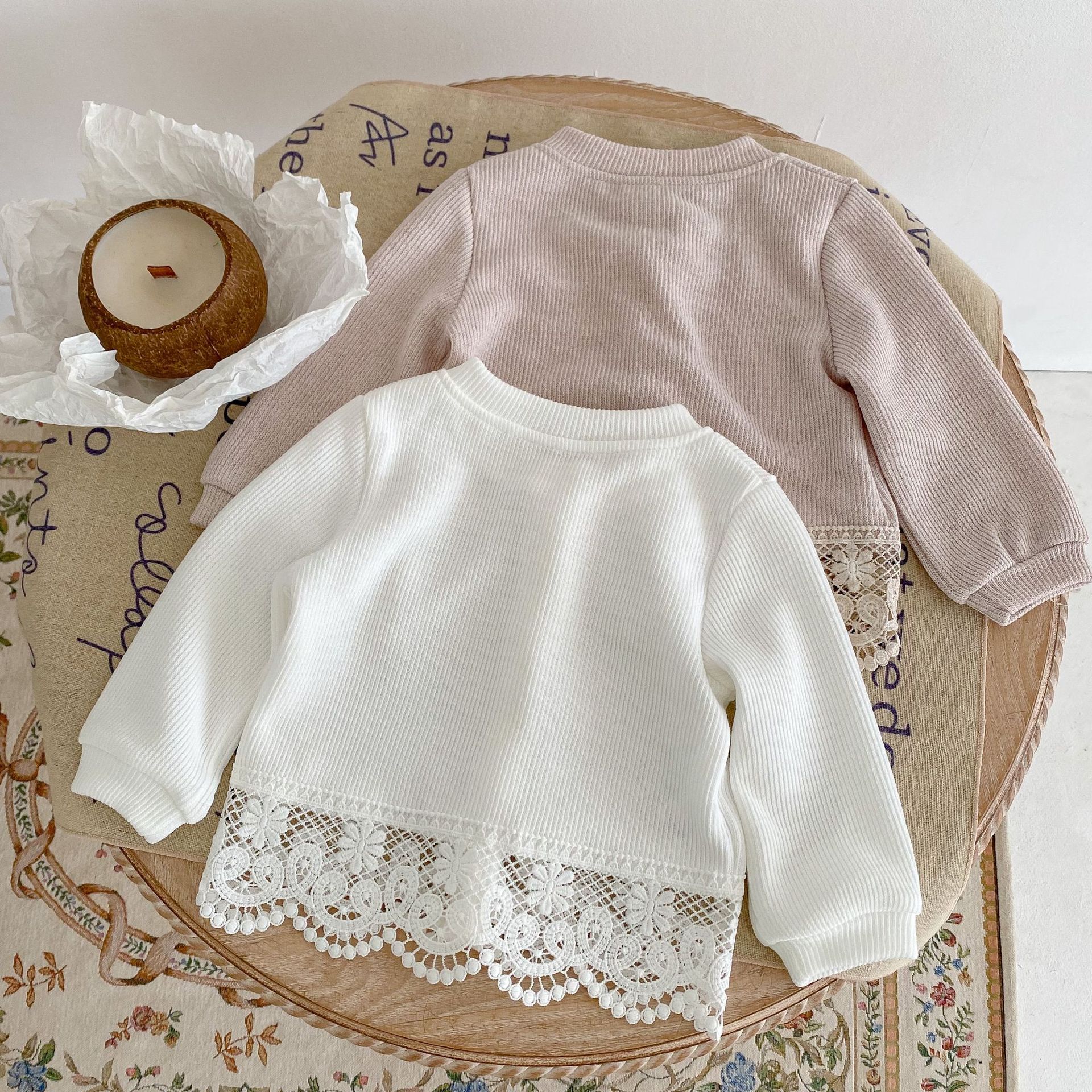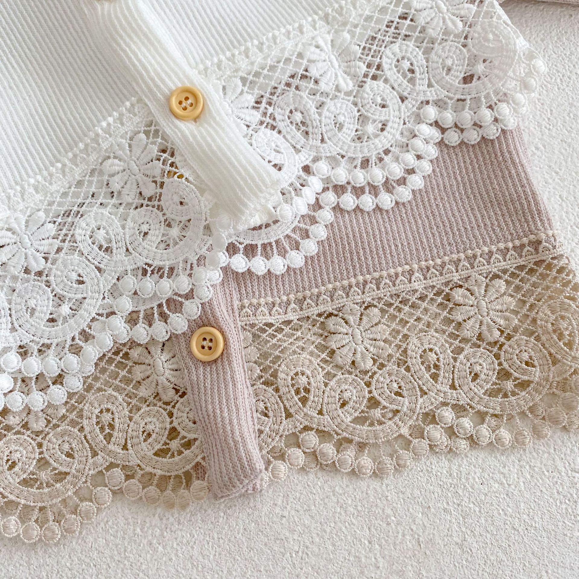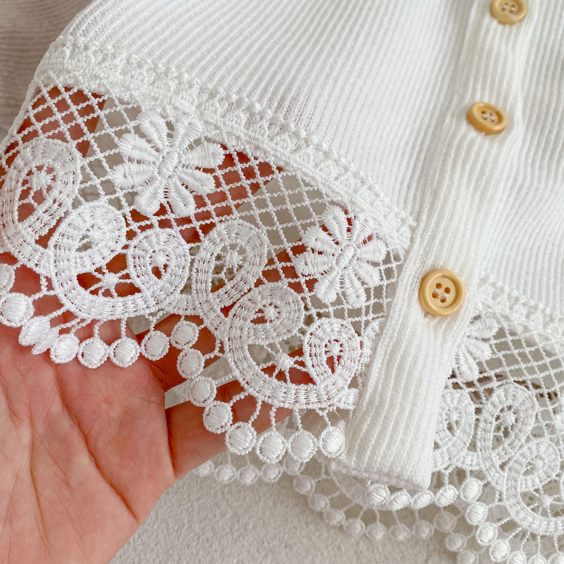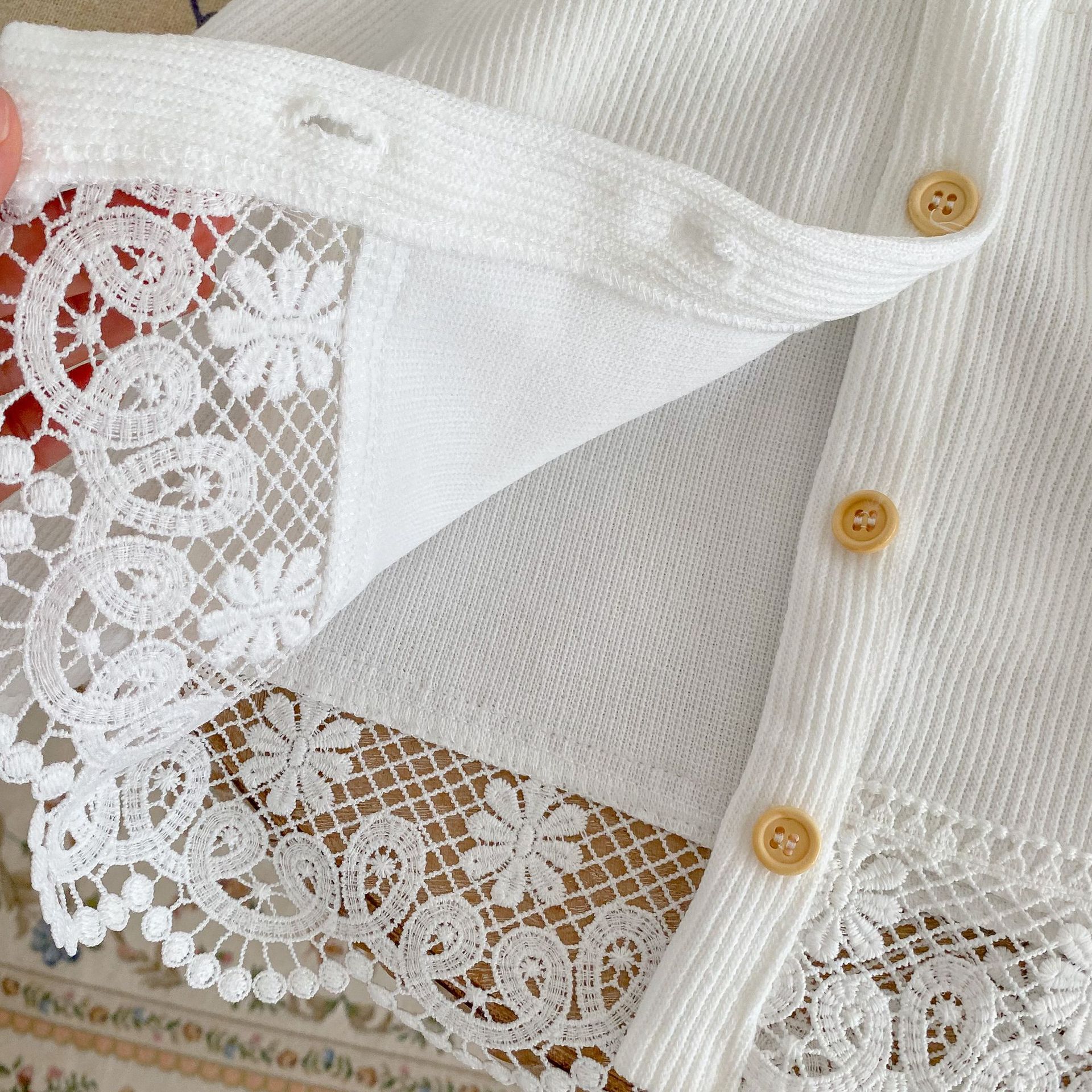 Features: round neck, lace