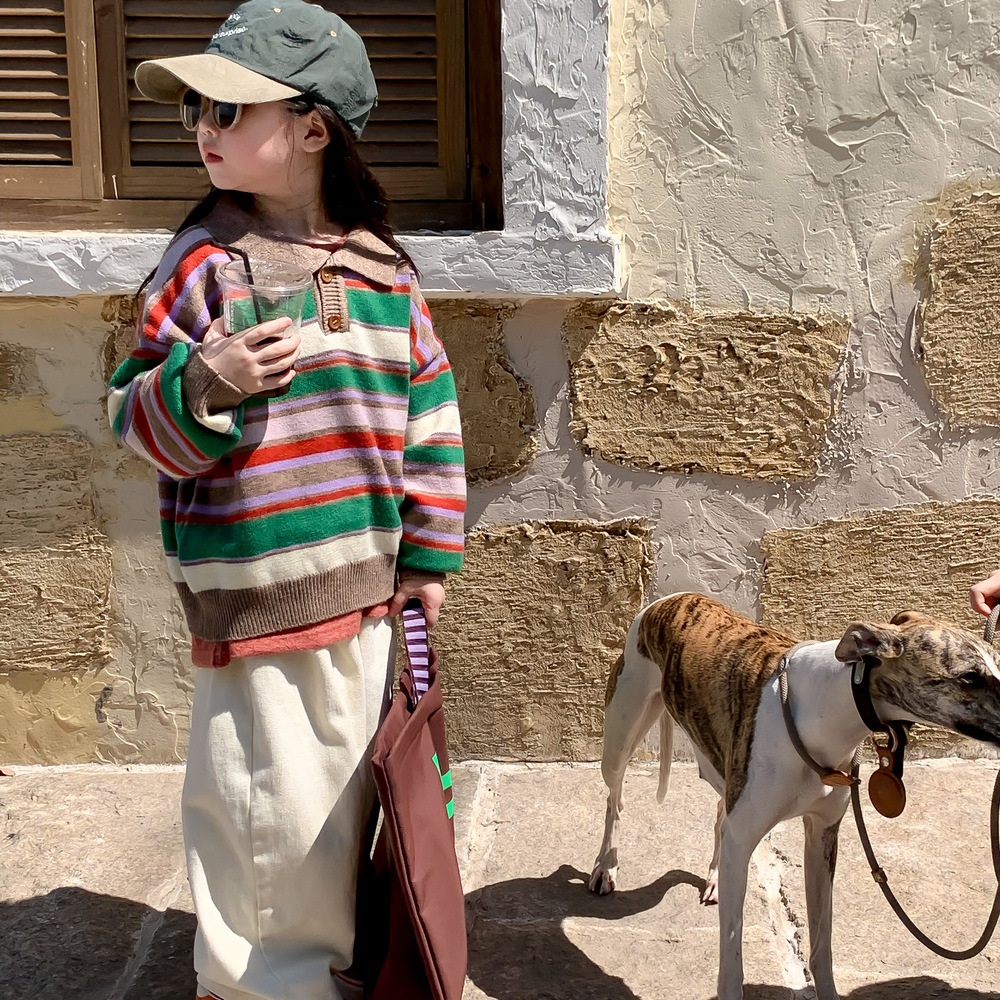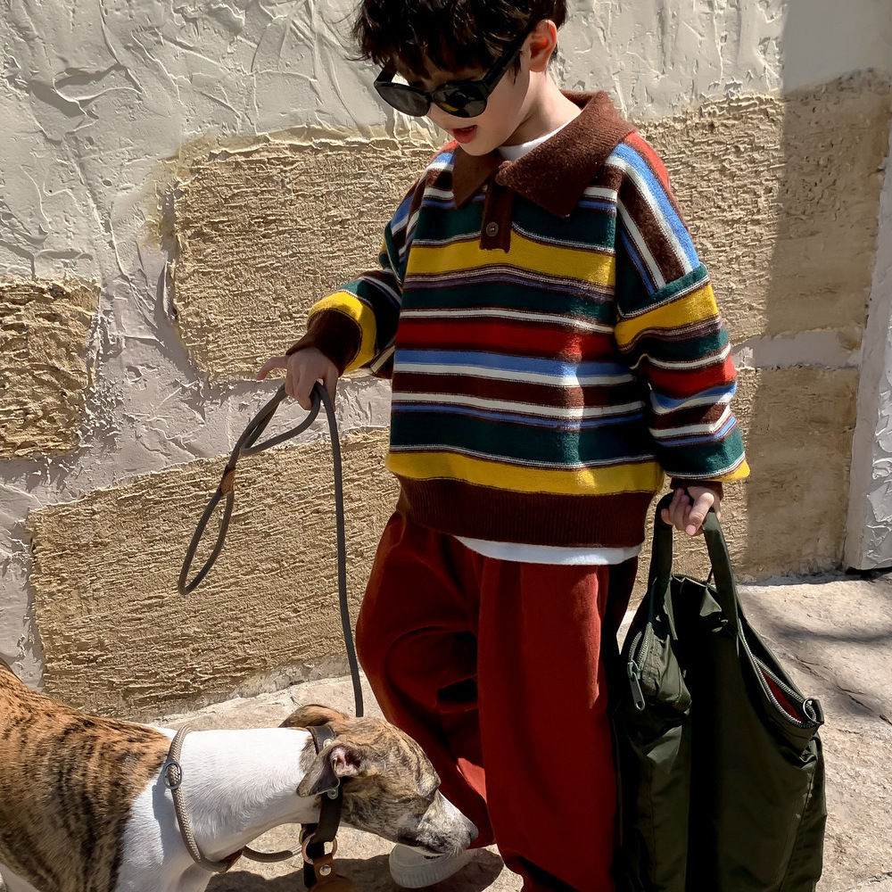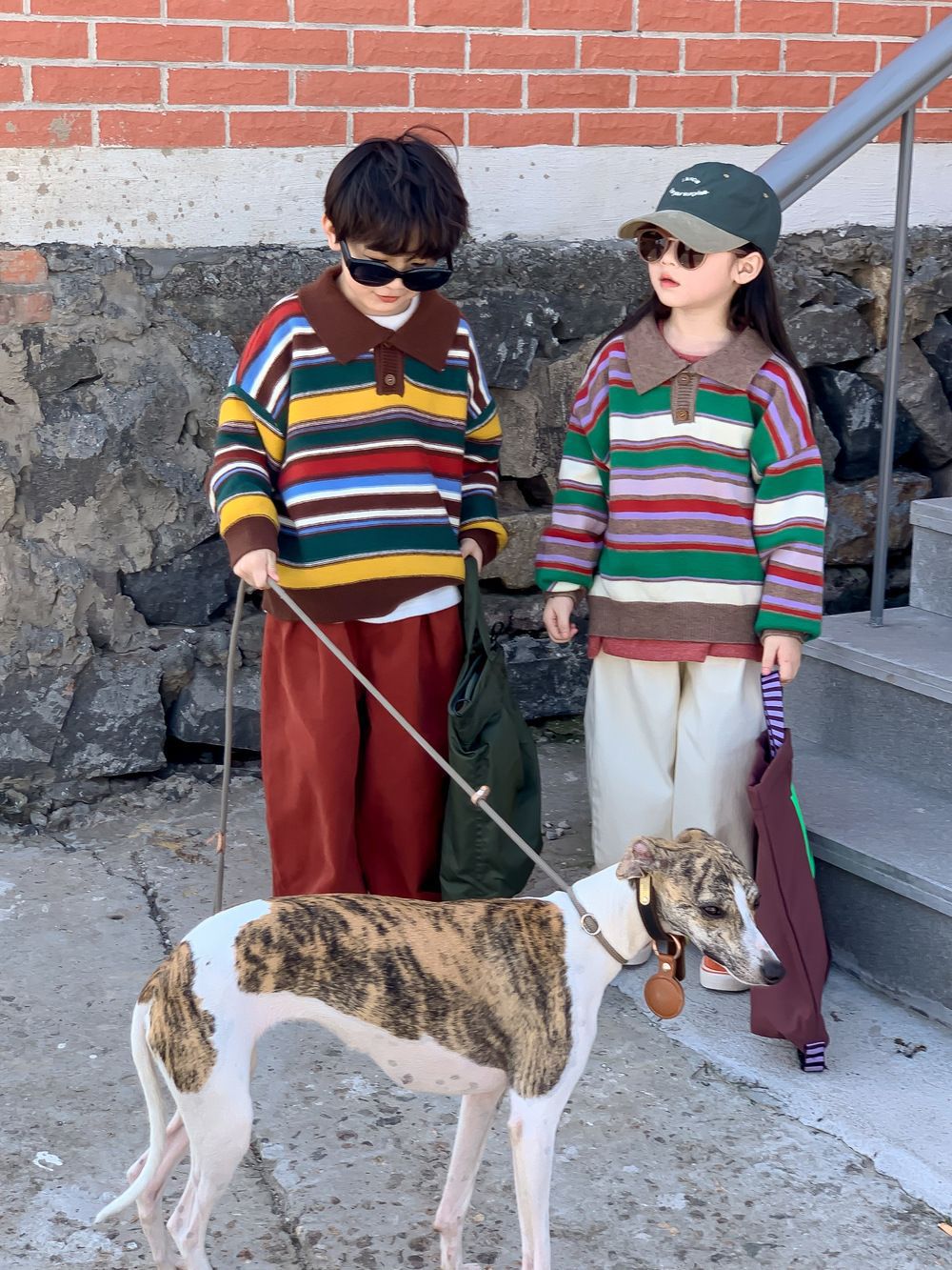 Color: Lapel color striped sweater Green, lapel color striped sweater yellow