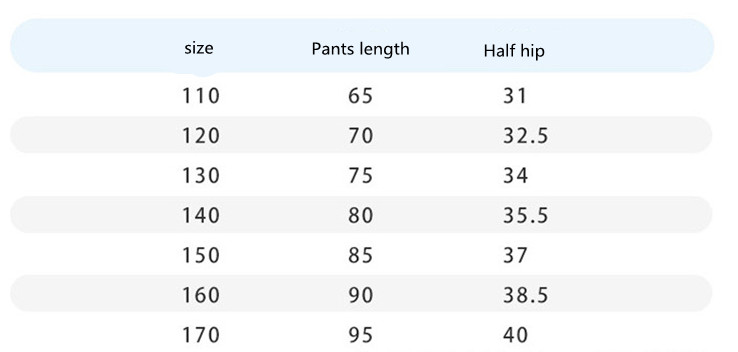 Size: 110cm, 120cm, 130cm, 140cm, 150cm, 160cm, 170cm