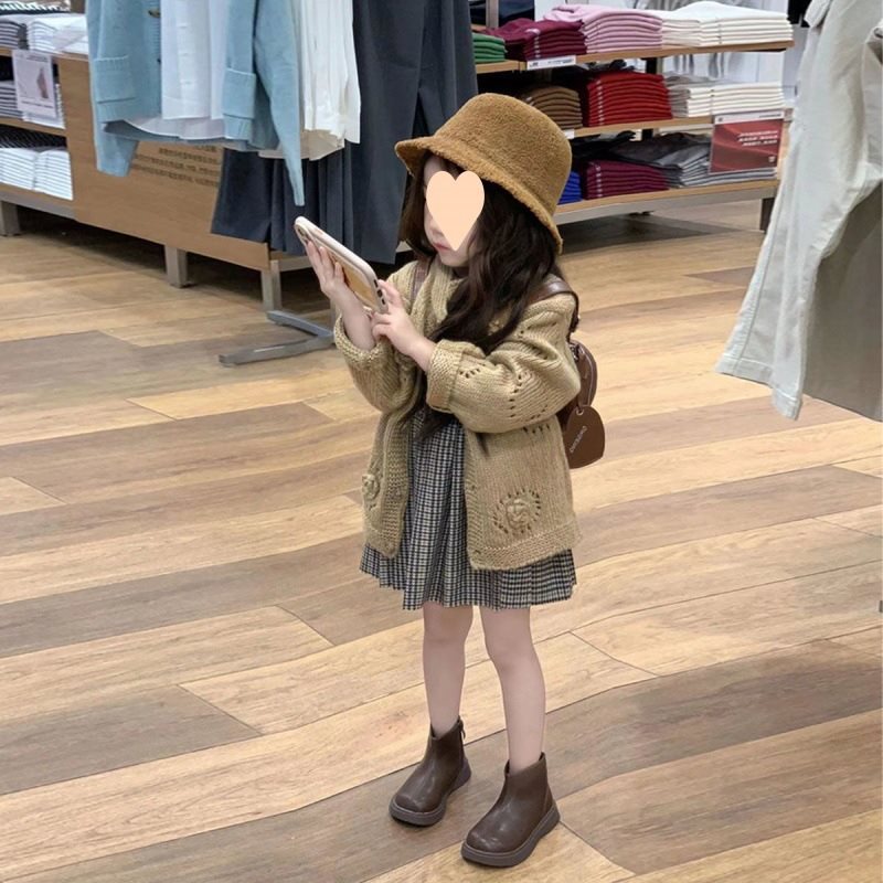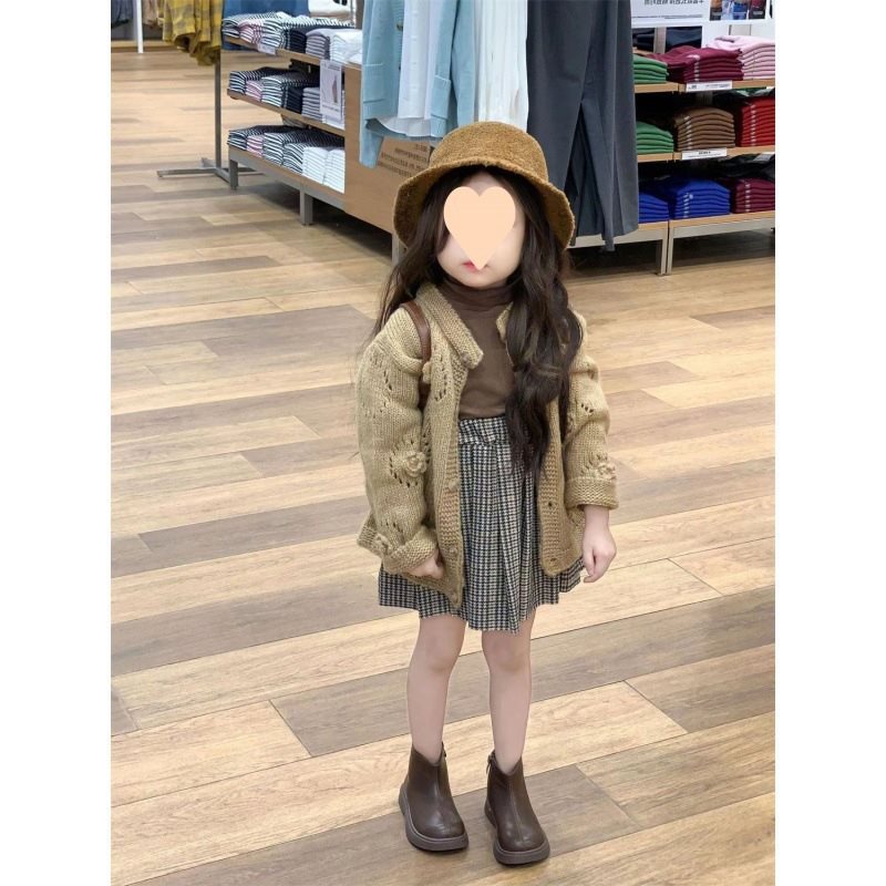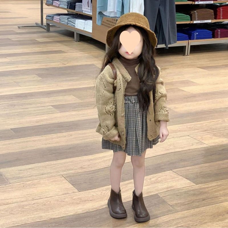 Color: Suit (top pleated skirt), three-dimensional flower cardigan, plaid skirt