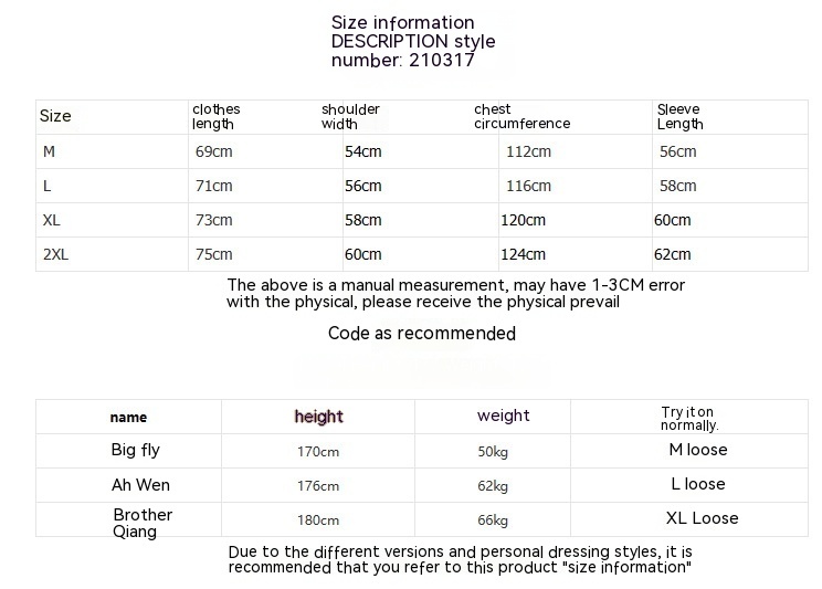1. Asian sizes are 1 to 2 sizes smaller than European and American people. Choose the larger size if your size between two sizes. Please allow 2-3cm differences due to manual measurement. 2. Please check the size chart carefully before you buy the item, if you don't know how to choose size, please contact our customer service. 3.As you know, the different computers display colors differently, the color of the actual item may vary slightly from the following images.