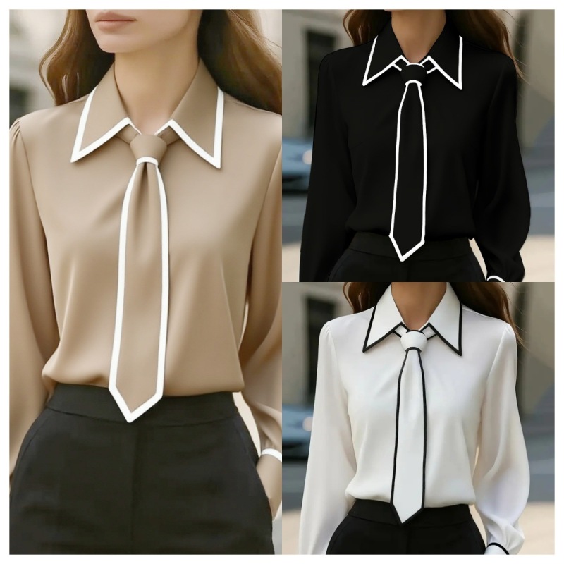 Autumn Fashion Solid Color Commute Tie Long Sleeve Shirt Women's Clothing