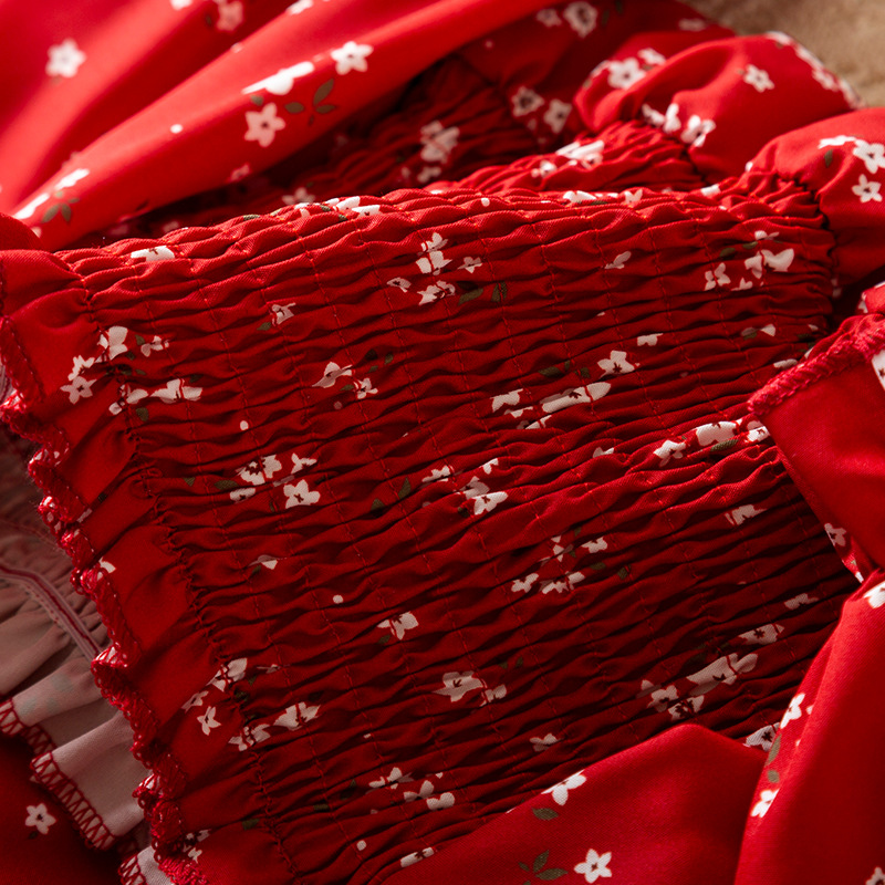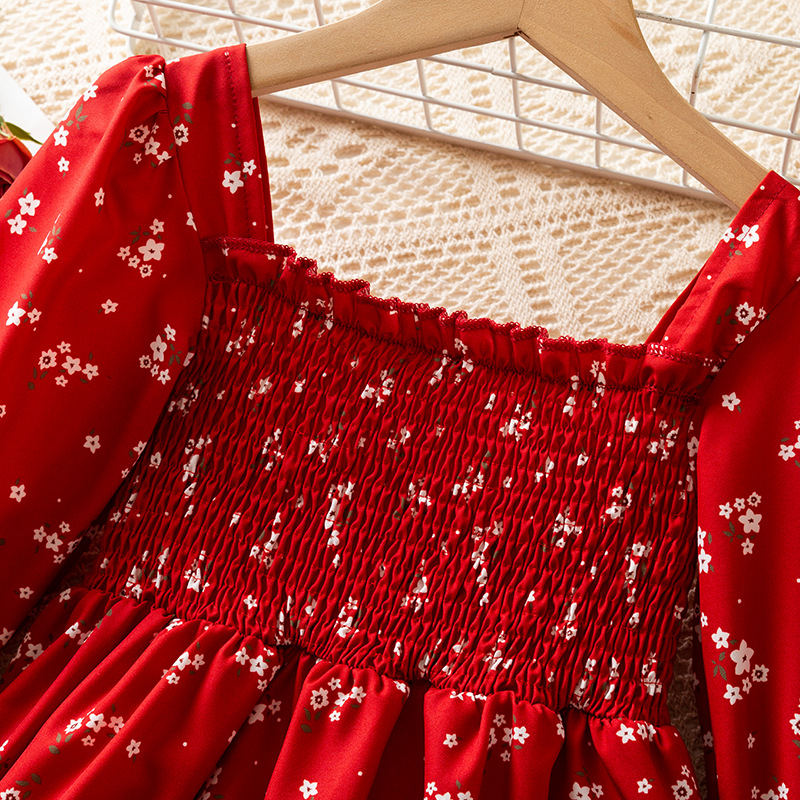 Autumn Girls' Long Sleeve French Puff Sleeve Princess Floral Skirt