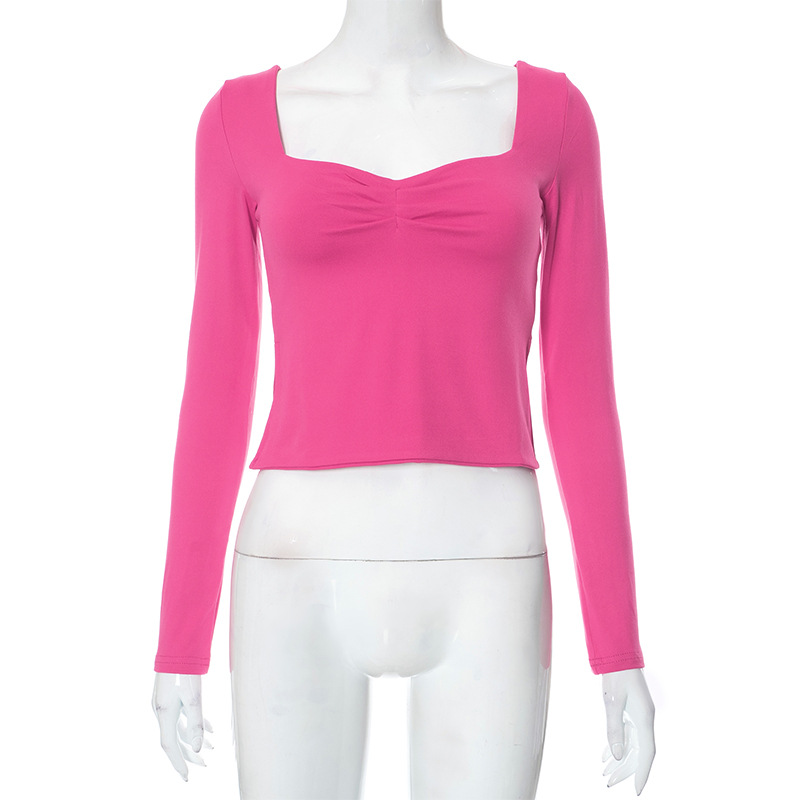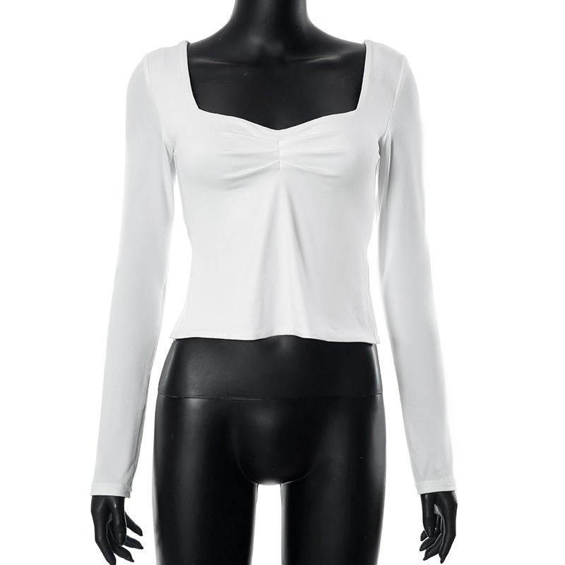 Autumn Ins New Solid Color Square Collar Long Sleeve Pleated Side Slit Top T-shirt For Women
