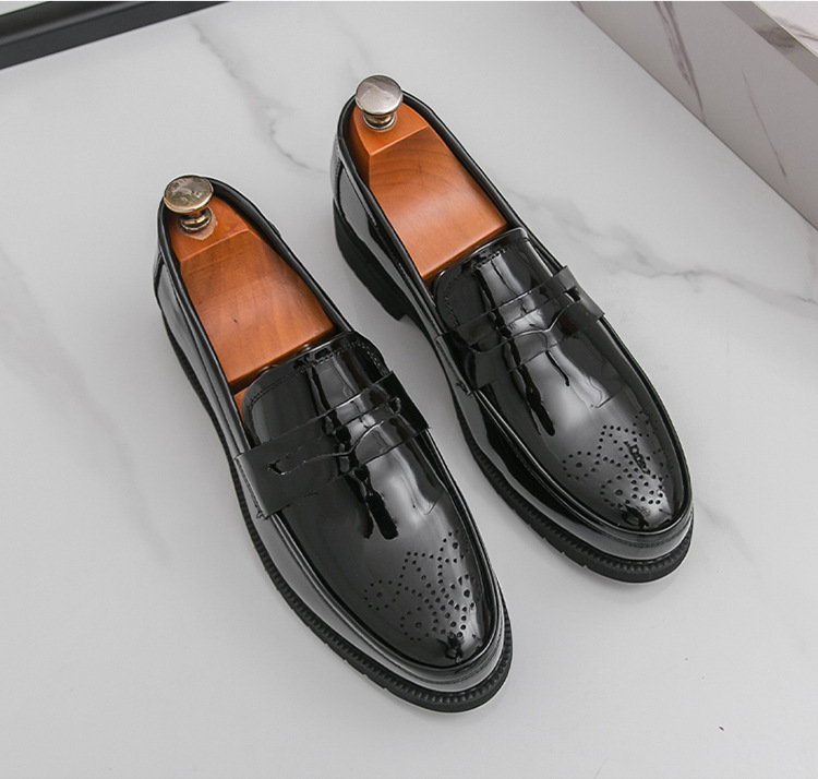 Autumn Men's Glossy Carved Leather Shoes