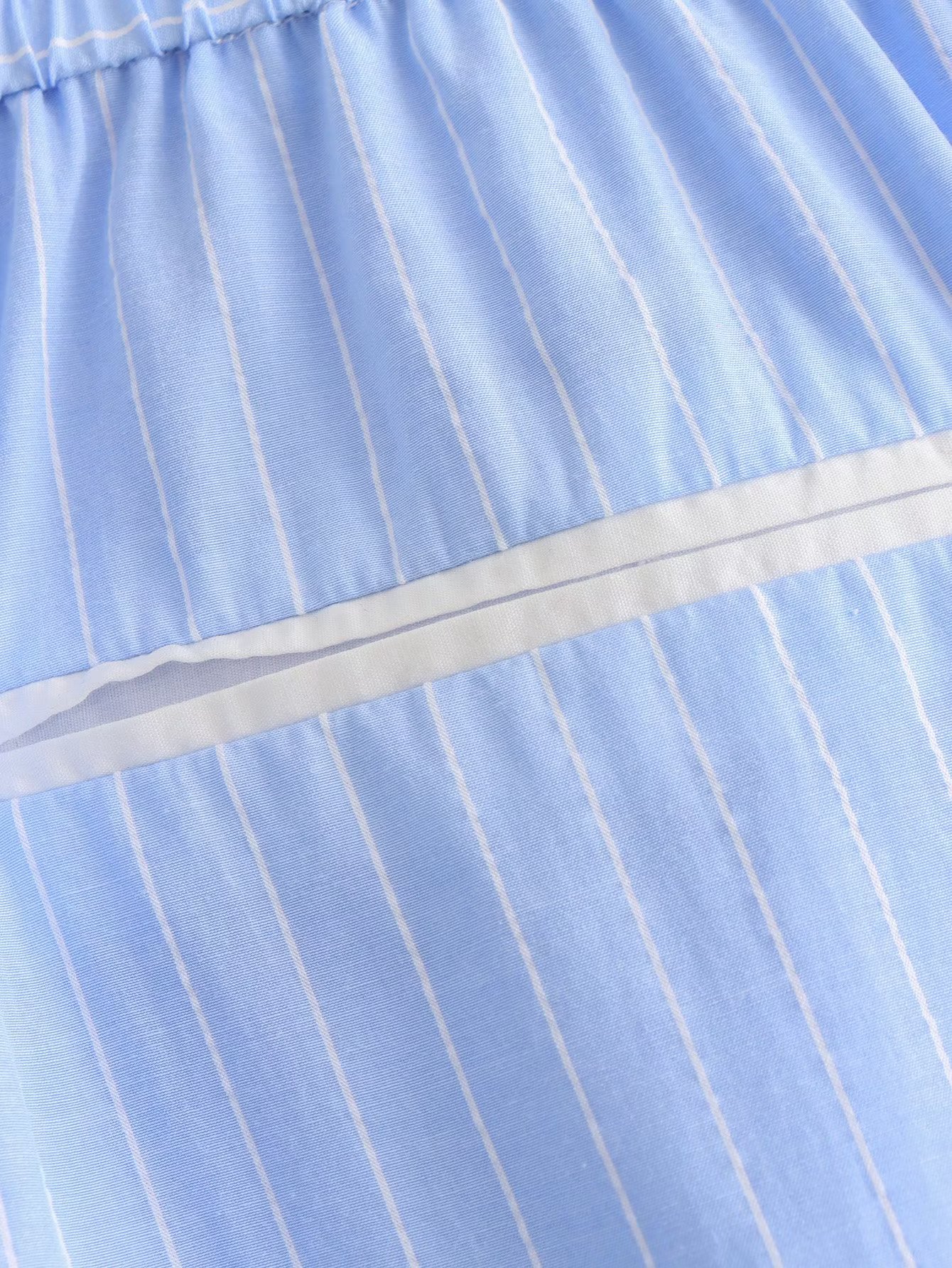 Color: blue striped shirt, blue striped shorts, blue striped suit