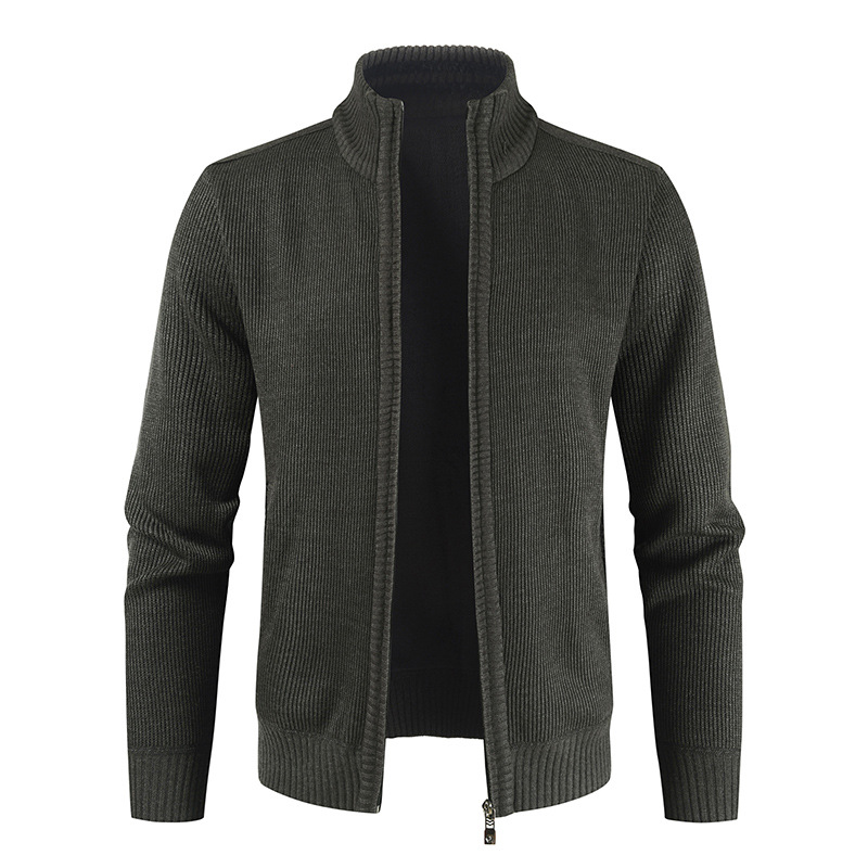 Autumn New Men's Cardigan Coat Casual Stand Collar Solid Color Men's Knitwear