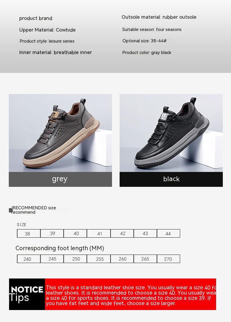 Shoe Upper material: two-layer cowhide