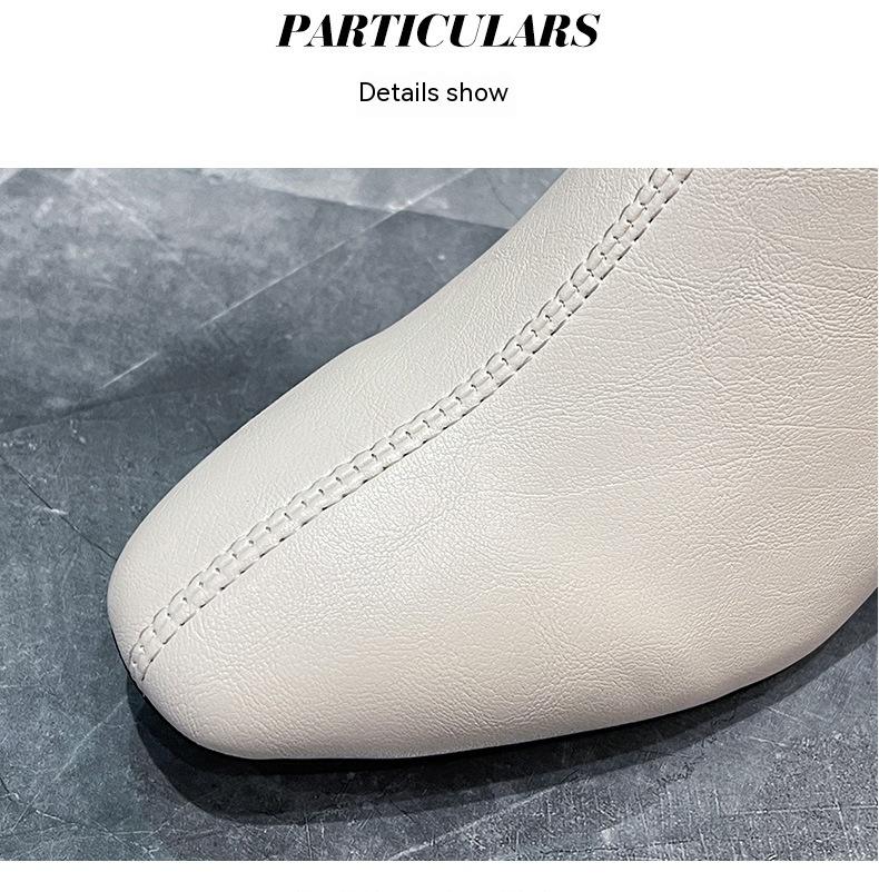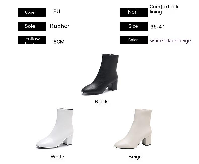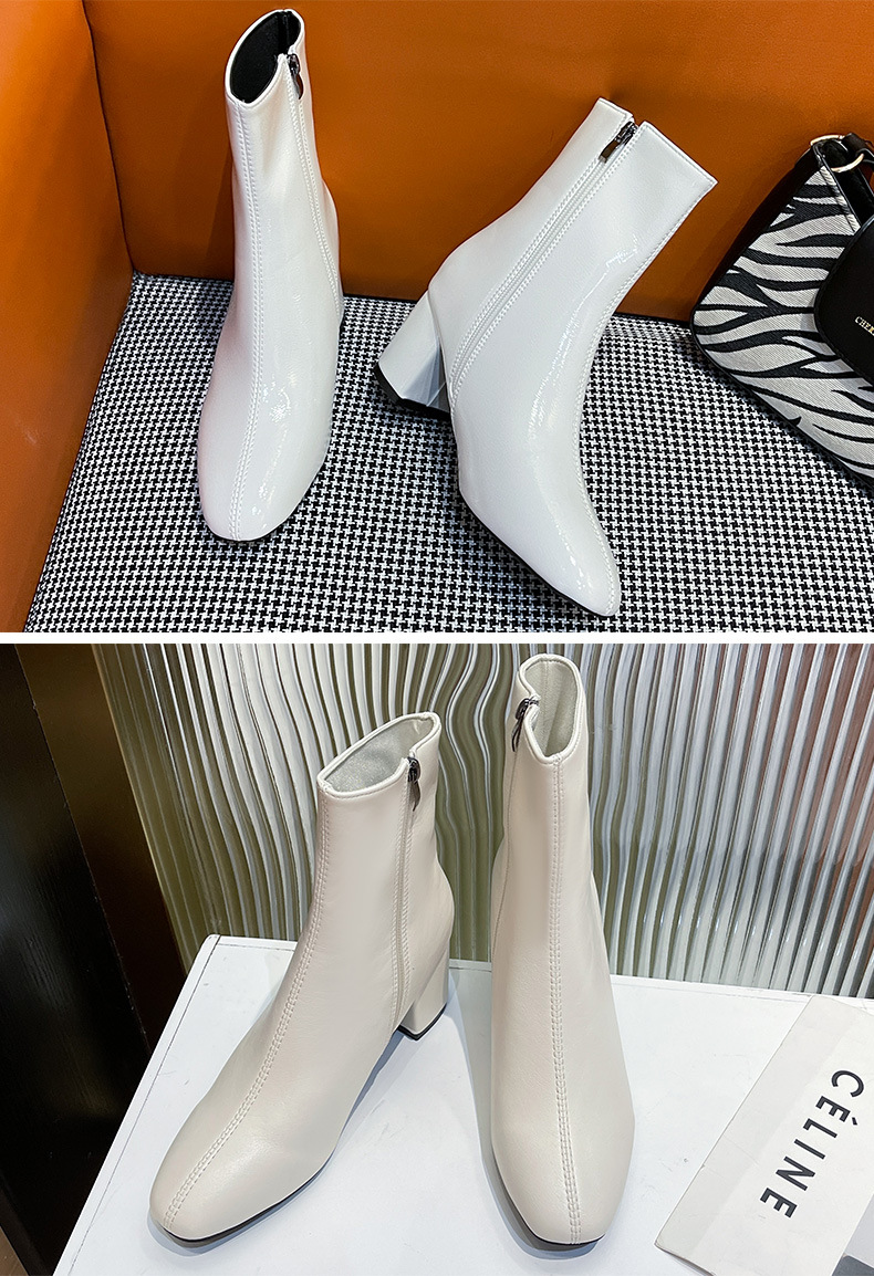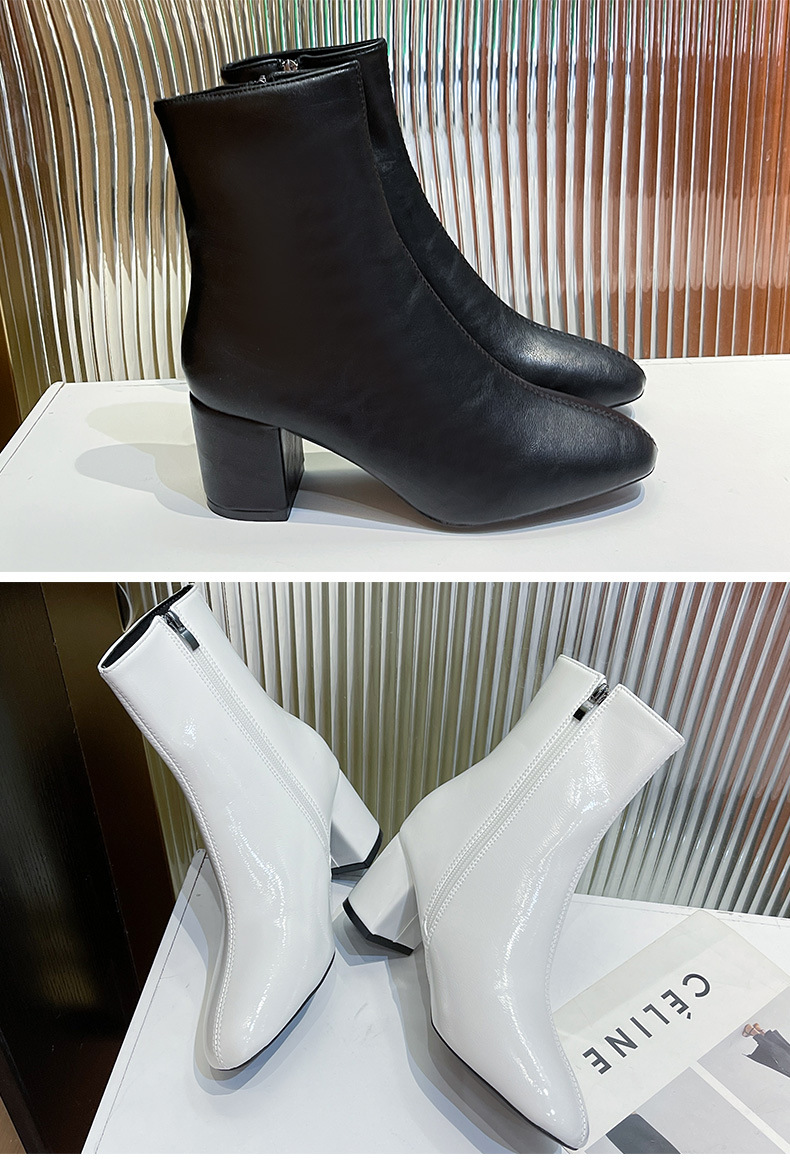 Autumn New Side Zipper Chunky Heel Square Toe Mid-calf Simple Fashion High Heels