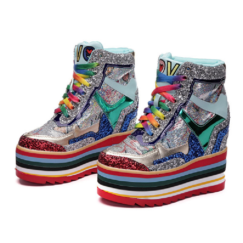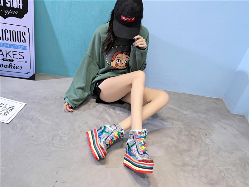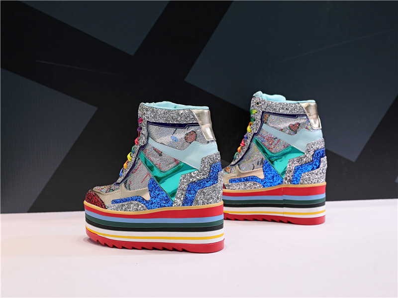 Popular elements: bright silk/sequins cross straps color matching waterproof platform