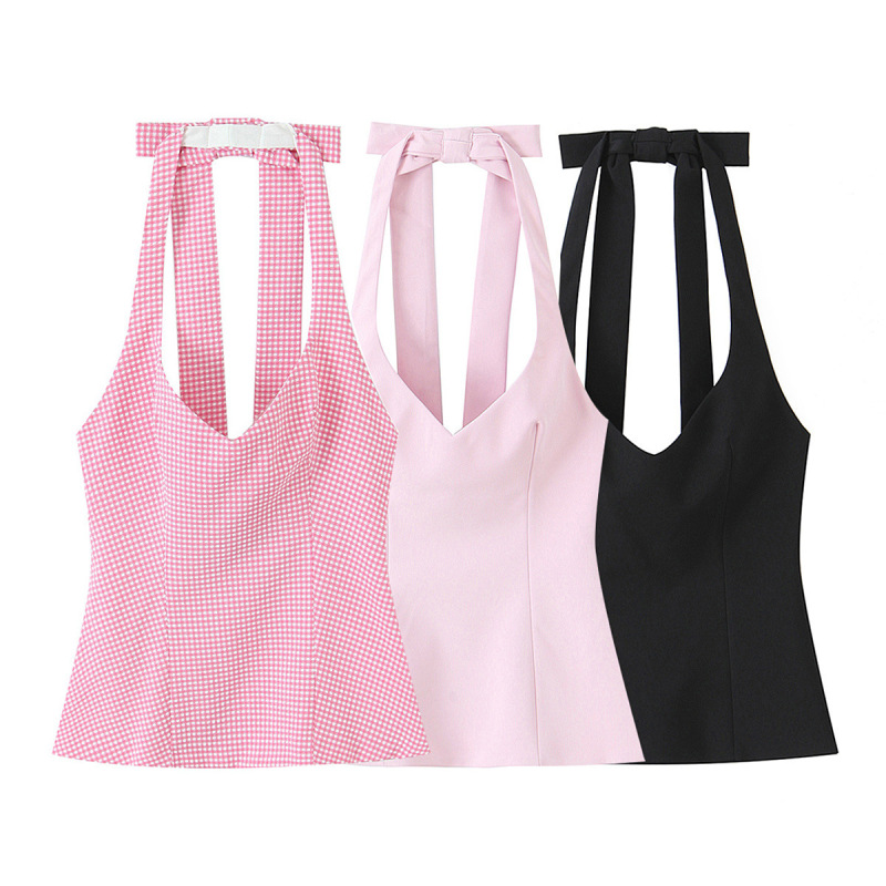 Autumn New Sweet And Spicy Style Slim-fit Hanging Collar Top