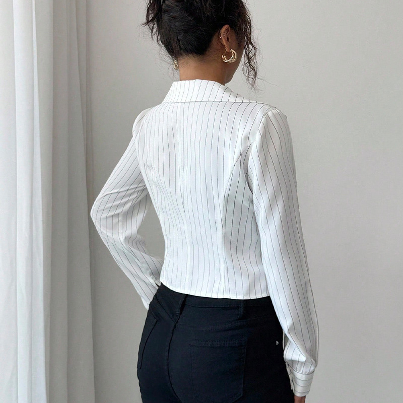 Autumn New Temperament Stripe Long Sleeve Shirt Women's Clothing