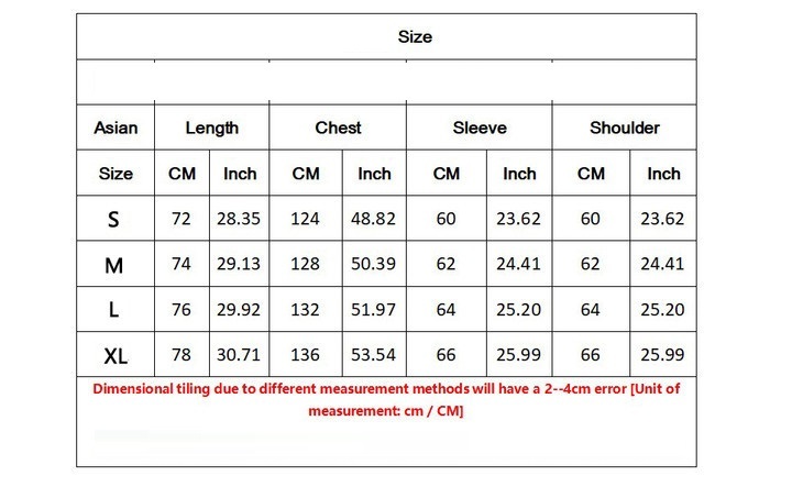 1. Asian sizes are 1 to 2 sizes smaller than European and American people. Choose the larger size if your size between two sizes. Please allow 2-3cm differences due to manual measurement. 2. Please check the size chart carefully before you buy the item, if you don't know how to choose size, please contact our customer service. 3.As you know, the different computers display colors differently, the color of the actual item may vary slightly from the following images.