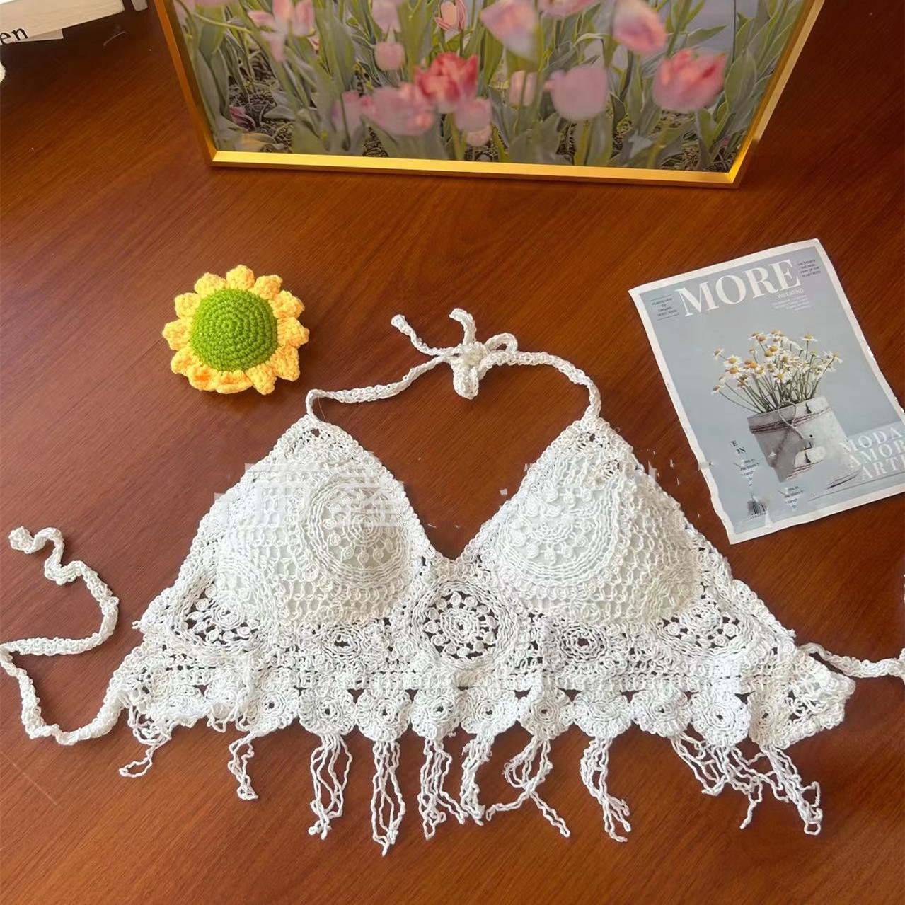 Popular elements: crocheted flowers