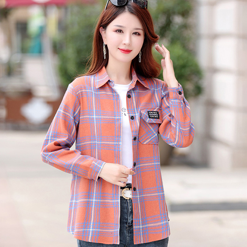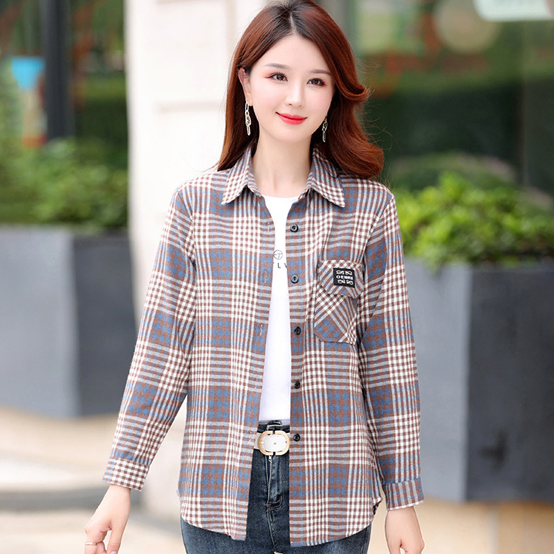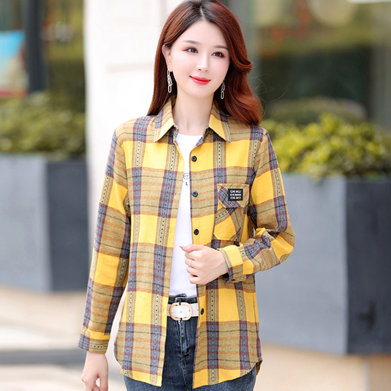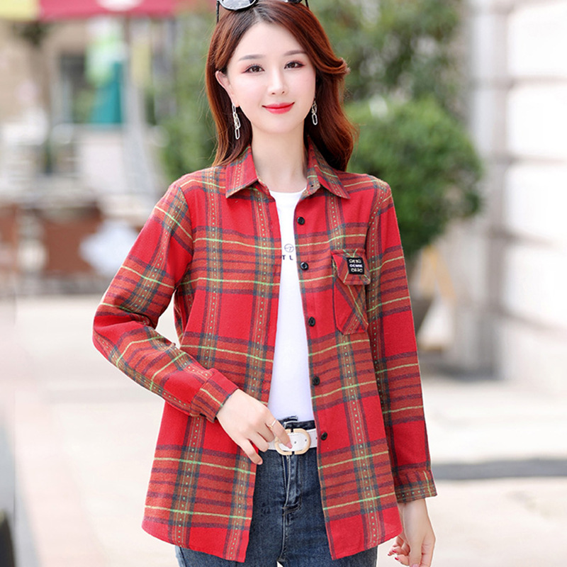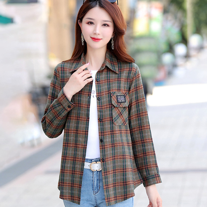 Autumn Plaid Shirt Women's Cotton Long-sleeved Brushed Vintage Coat