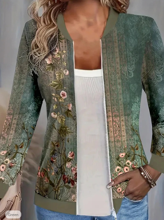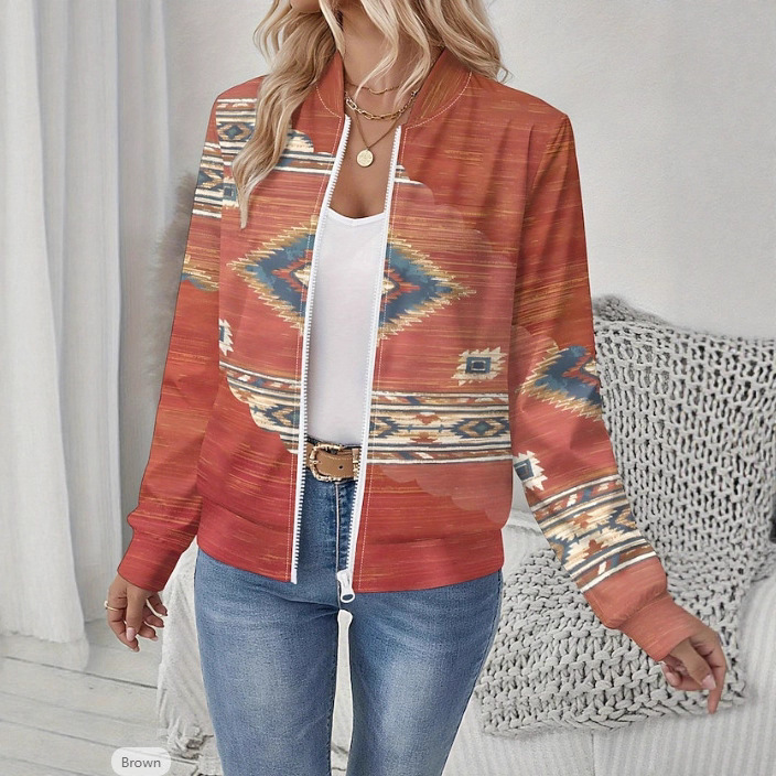 Autumn Printed Cardigan Women's Casual Baseball Jacket