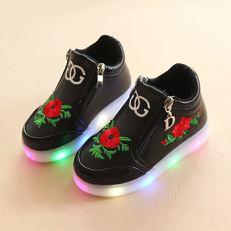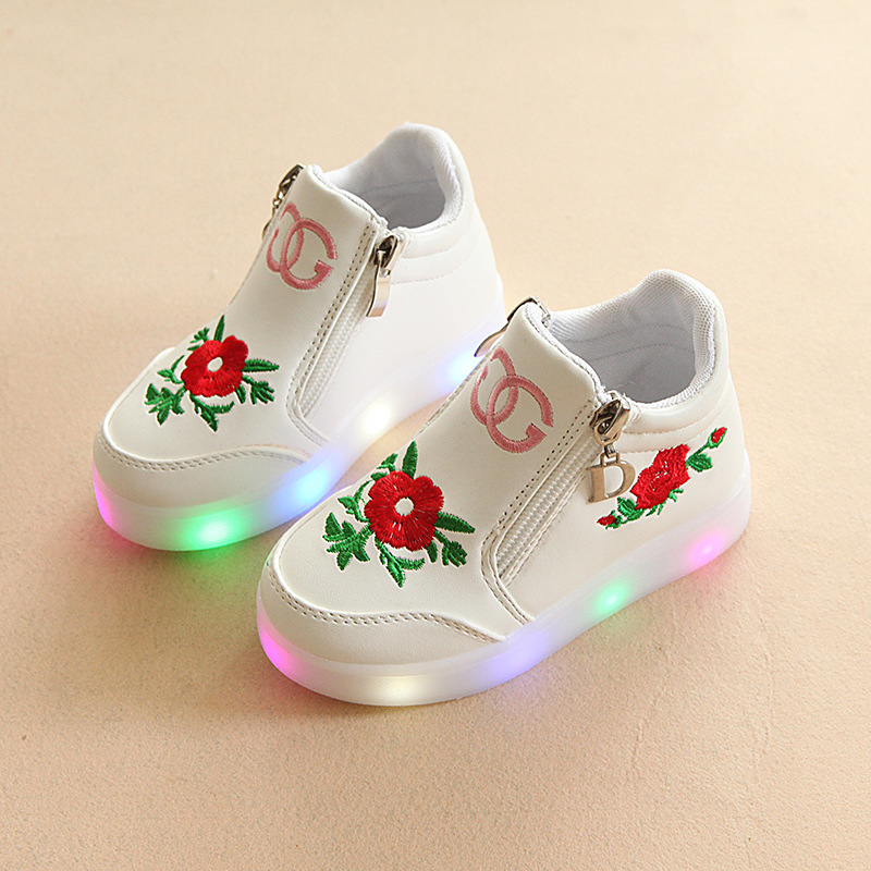 autumn style Korean fashion leisure roses, children's shoes, LED luminous soft bottom, women's shoes, baby shoes