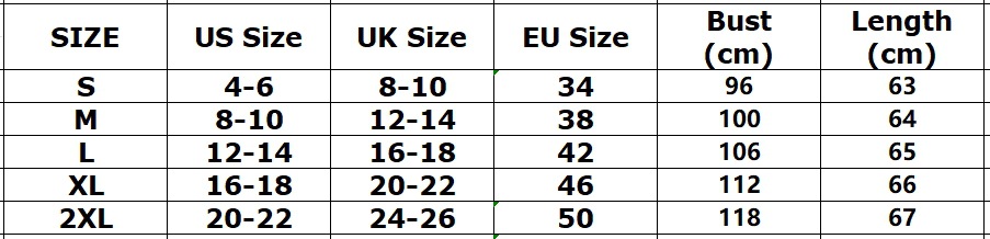 Sizes: S, M, L, XL, XXL