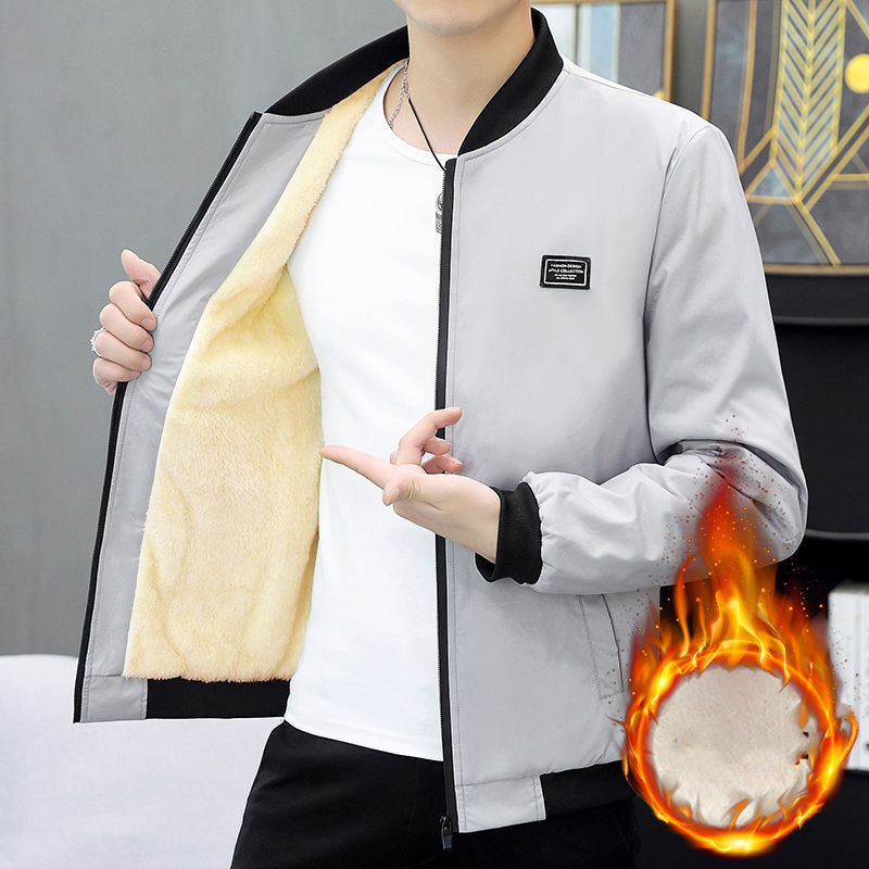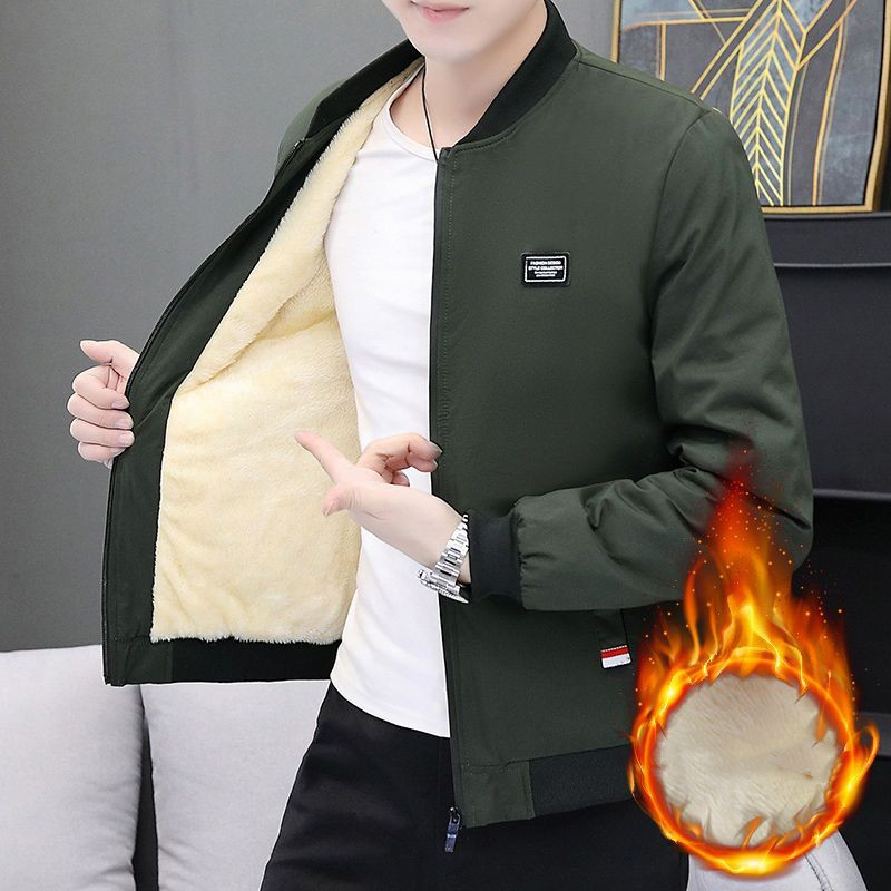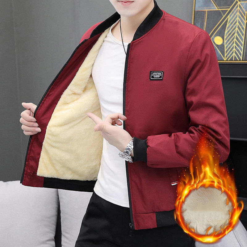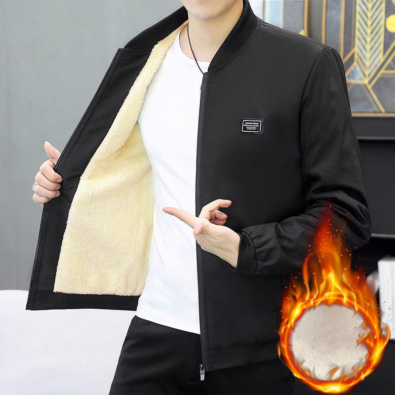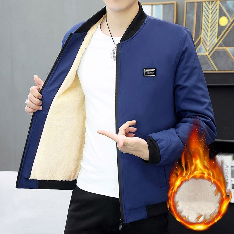 Autumn Winter Coat Men's Fleece-lined Thickened Cotton-padded Coat Slim-fit Jacket Men