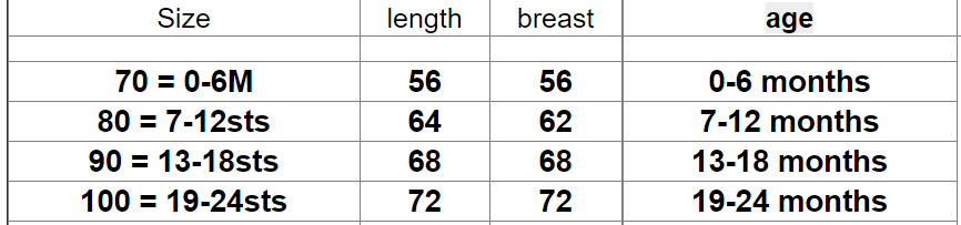 Size Information: