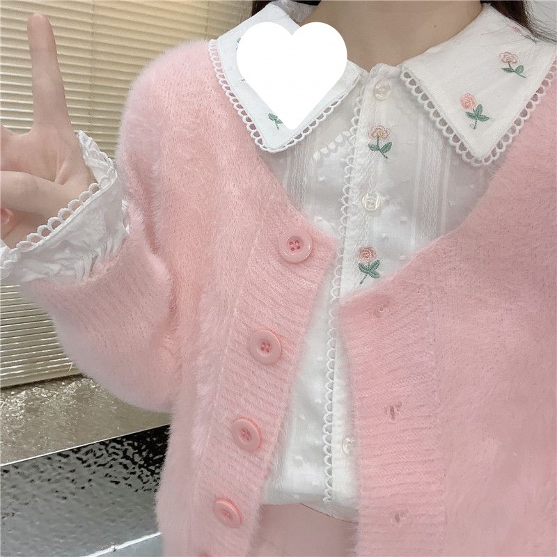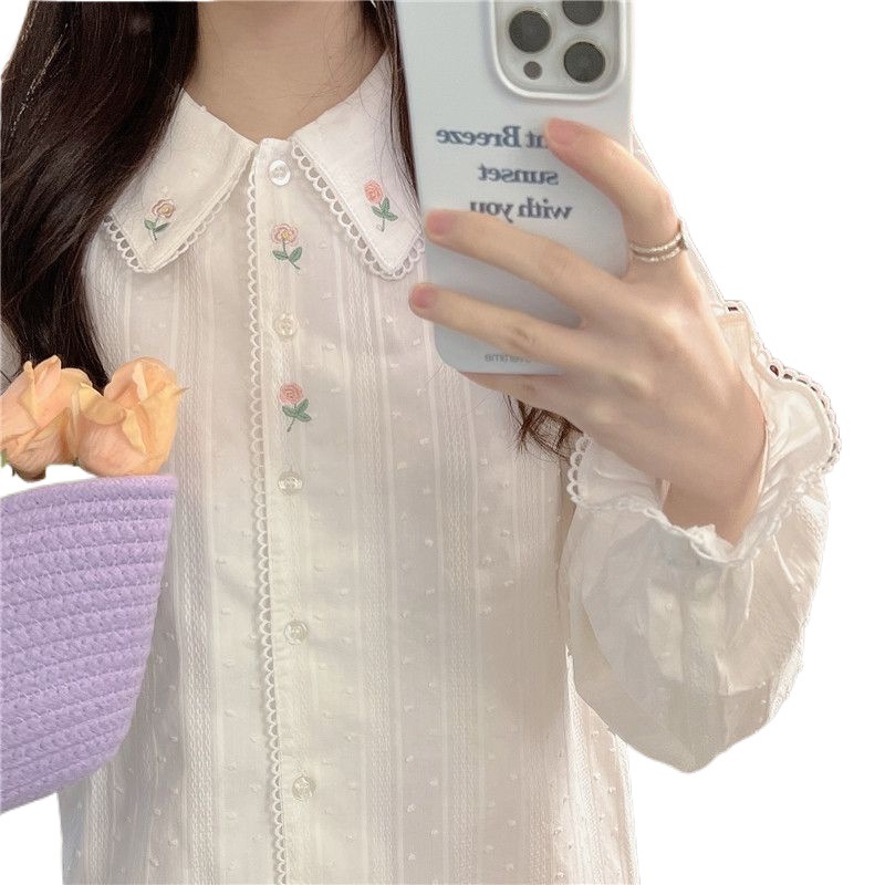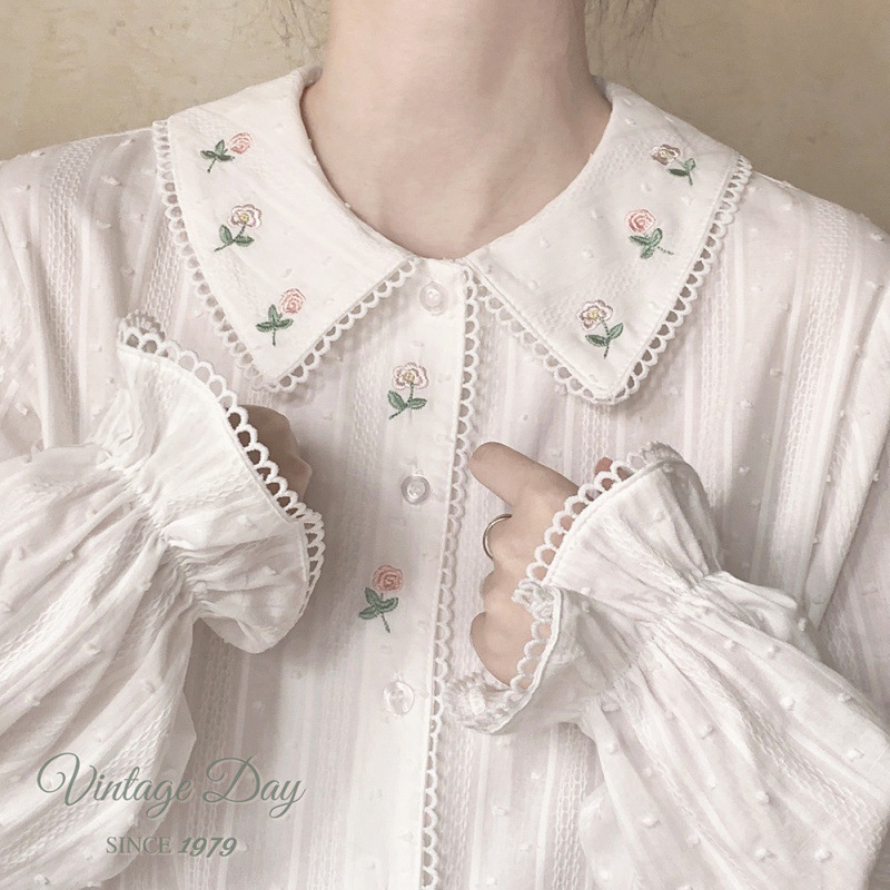 Color: white one-piece rose embroidered shirt
