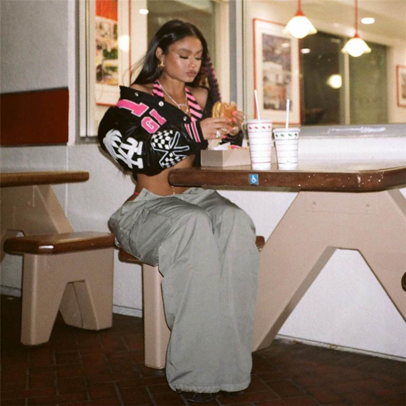 Autumn Women's Hot Girl American Retro Printed Cardigan Baseball Uniform Coat