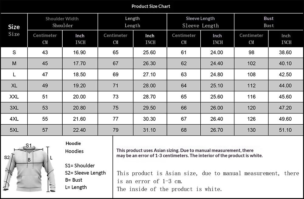 Sizes: S, M, L, XL, 2XL, 3XL, 4XL, 5XL, 6XL