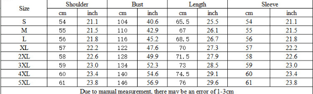 1. Asian sizes are 1 to 2 sizes smaller than European and American people. Choose the larger size if your size between two sizes. Please allow 2-3cm differences due to manual measurement. 2. Please check the size chart carefully before you buy the item, if you don't know how to choose size, please contact our customer service. 3.As you know, the different computers display colors differently, the color of the actual item may vary slightly from the following images.