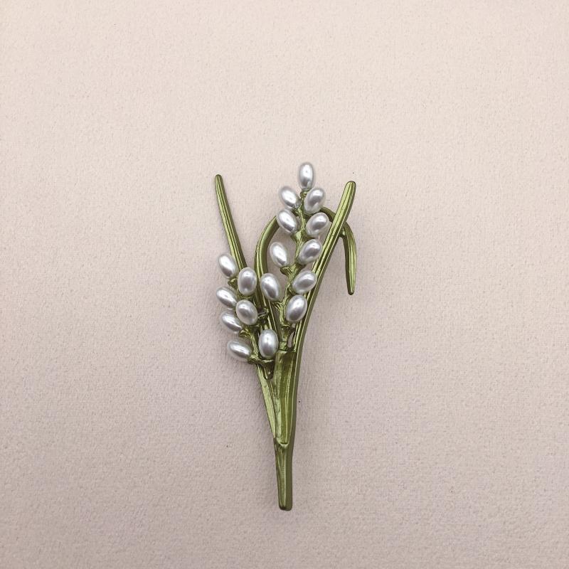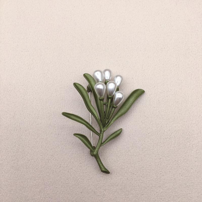 Avocado Green Art Small Fresh Pearl Leaf Brooch