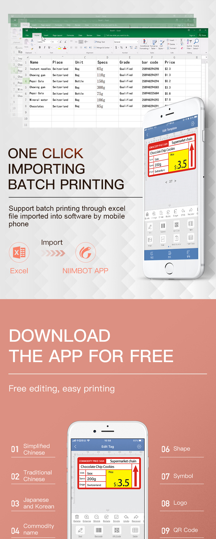 Print content:Word / picture / barcode / QR code