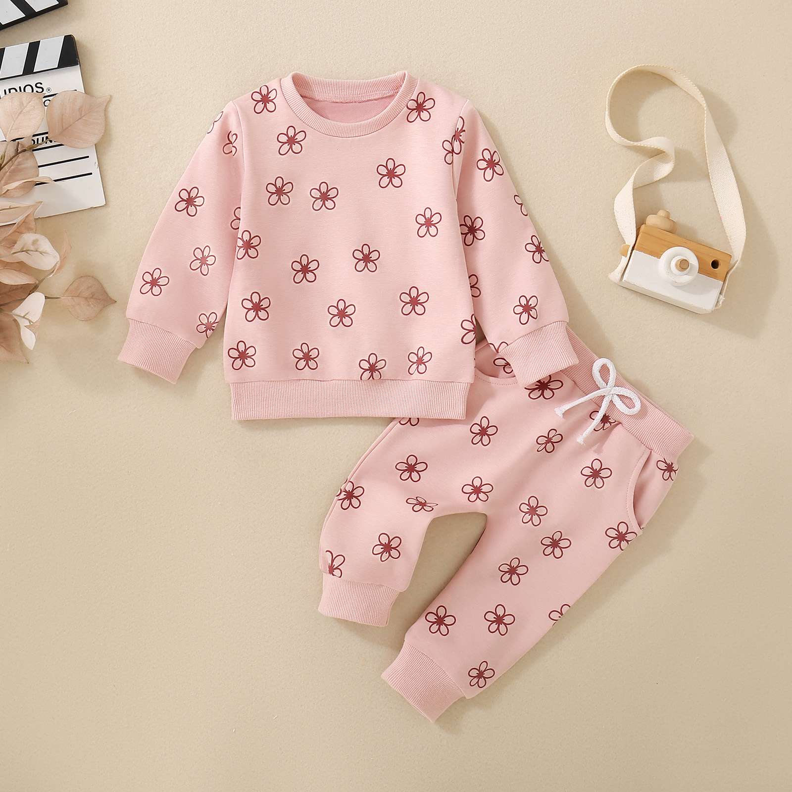 Key elements: Sporty, set, cartoon, cute, printed, trendy, crotch-open design