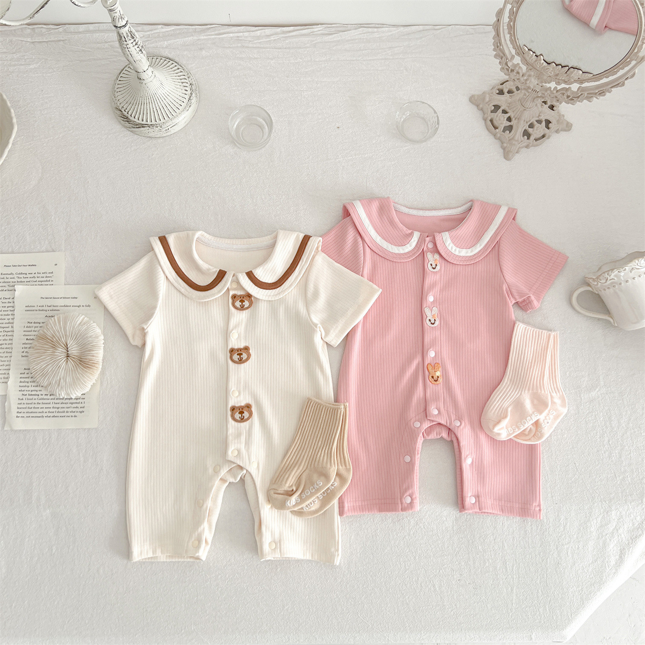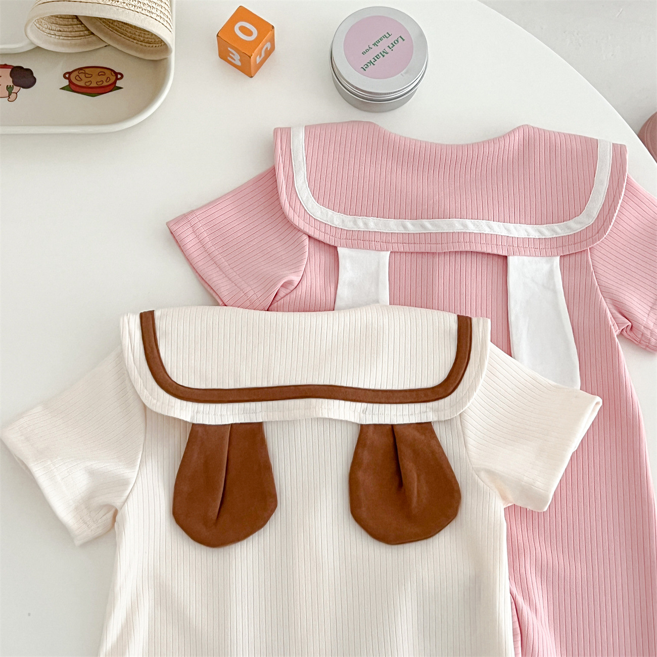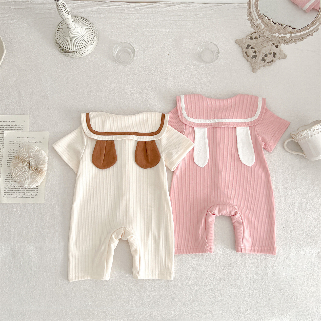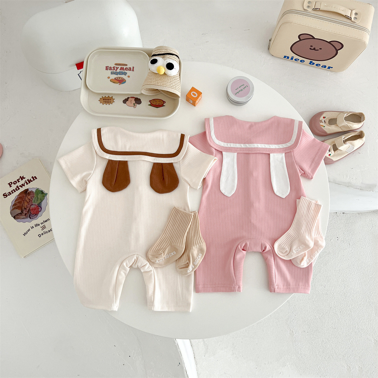 Baby Bear Rabbit Ear Jumpsuit Summer Sunken Stripe Cotton Going Out Clothes