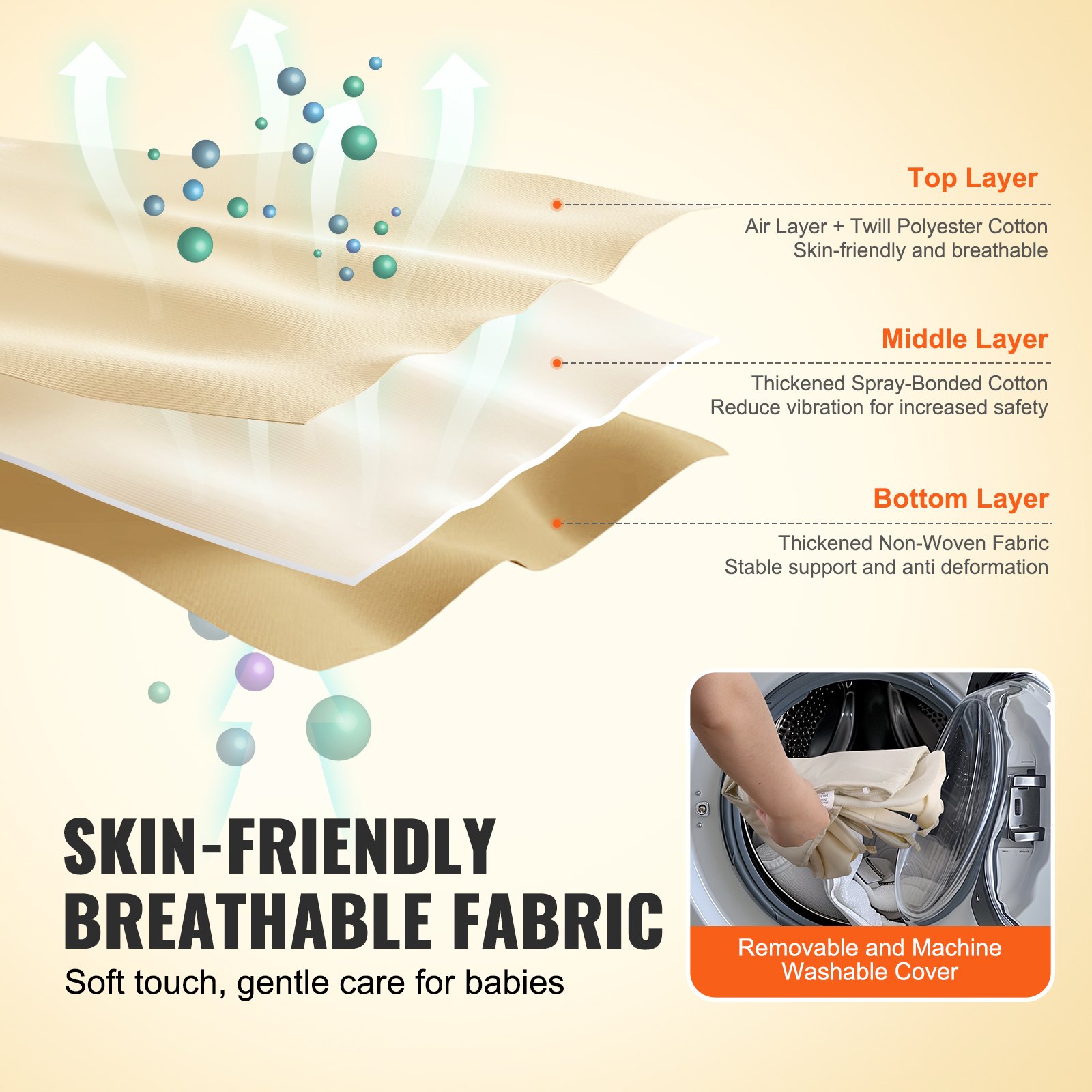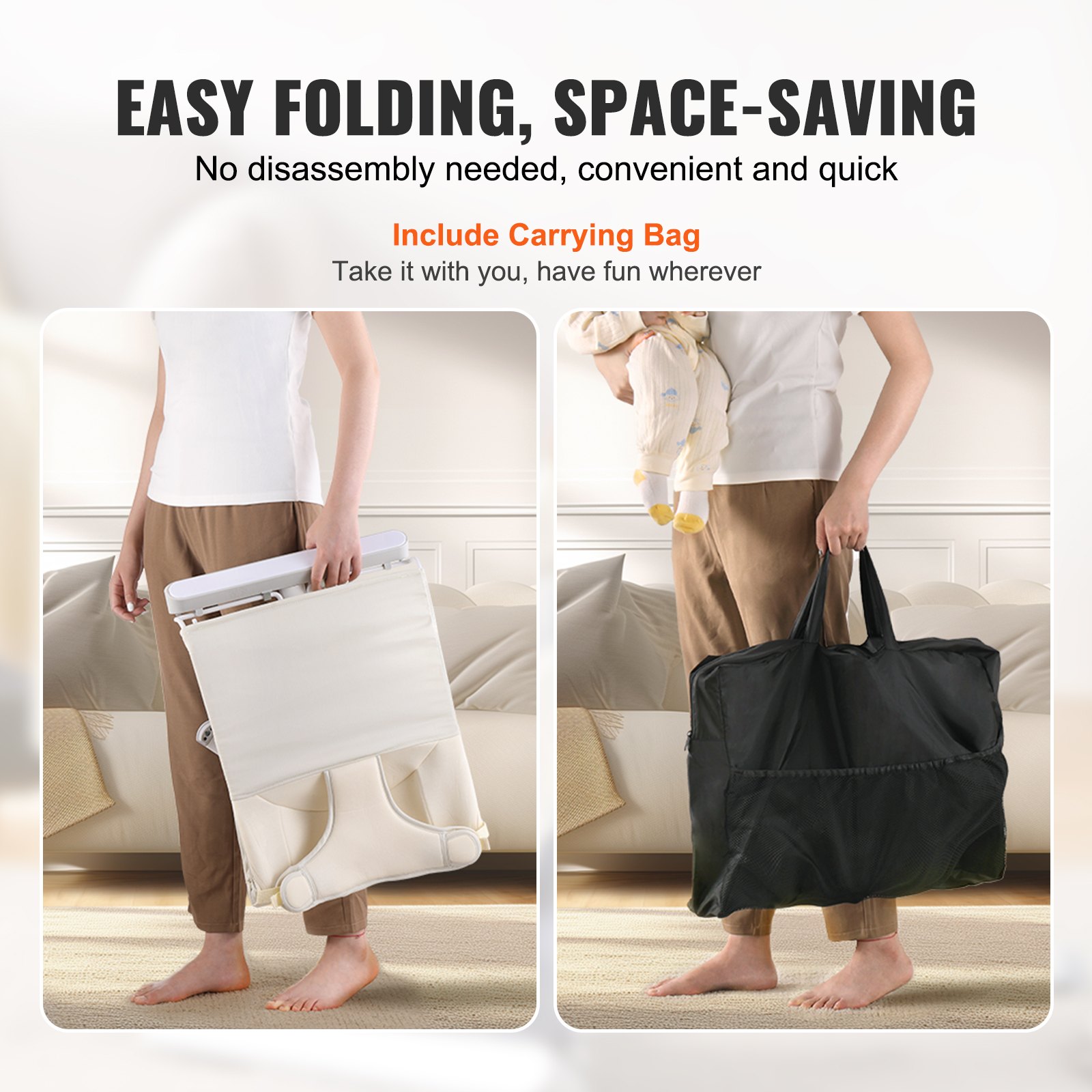Gentle Bouncing, Happy Babies: Natural bouncing, no plug-in required! VEVOR baby bouncer features 3-point safety harness and stereoscopic wrapping, providing a gentle and secure rocking experience. Soothing bouncing motions imitate moms warm womb, keeping your babies sleep soundly and play happily. (Suitable for 0-9 months babies, Maximum load: 20LBS) 2 Reclining Positions: Our baby bouncer chair features 2-level recline angles, allowing you to find the perfect angle for your baby's comfort and development. Whether it's soothing nap time or engaging playtime, this bouncer seat adapts to your baby's needs, providing optimal support for their head, neck, and spine. Fun-filled Toys, Playful Exploration: This infant rocker chair has a rotatable toy bay with 2 engaging toys (a bell and a mirror), designed to capture your baby's attention and enhance their curiosity. Interactive toys promote reaching, grasping, and exploration, helping to develop baby's fine motor skills and hand-eye coordination. Premium Materials: Our portable bouncer seat for babies is made from high-quality, soft cotton and non-woven fabric, skin-friendly and breathable. The removable, machine-washable cover simplifies cleaning and maintenance, so you can spend more time enjoying precious moments with your little one. Fold and Go: No disassembly is required—simply fold this infant bouncer for quick and easy storage. The included carrying bag makes it convenient to take the bouncer seat outdoors, providing a comfortable resting environment for your baby anytime, anywhere.