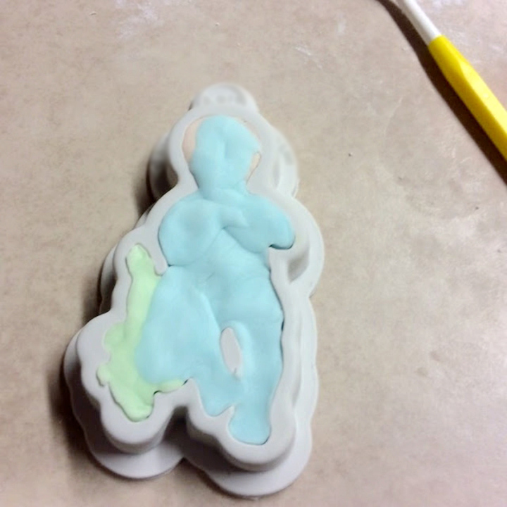 3. Push the dough into the mold without over-filling. Scrape off the excess solder paste so that the outline of the design can be seen.