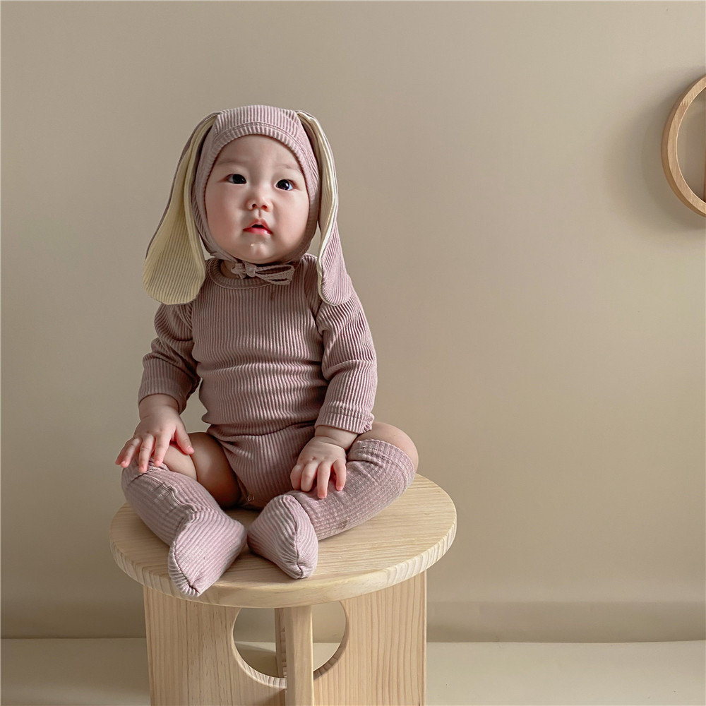 Color: Khaki Long Sleeve Threaded Romper + Rabbit Ear Hat + Medium Socks, Leather Long Sleeve Thread Romper + Rabbit Ear Hat + Medium Socks