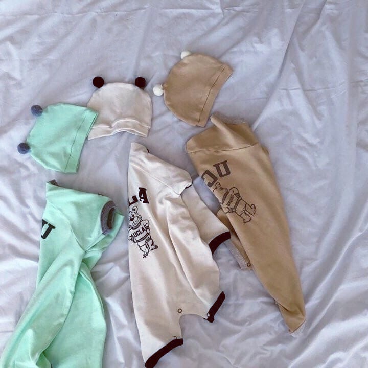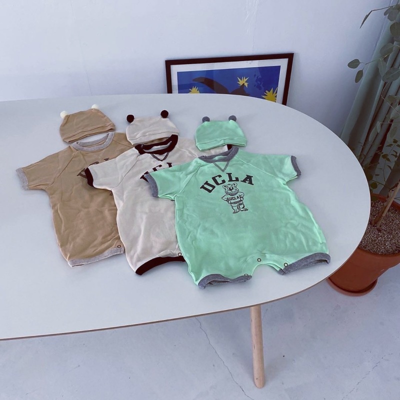 Color: Natural Yellow Printed Tiger Romper + Double Ball Hat, Green Printed Tiger Romper + Double Ball Hat, White Printed Tiger Romper + Double Ball Hat