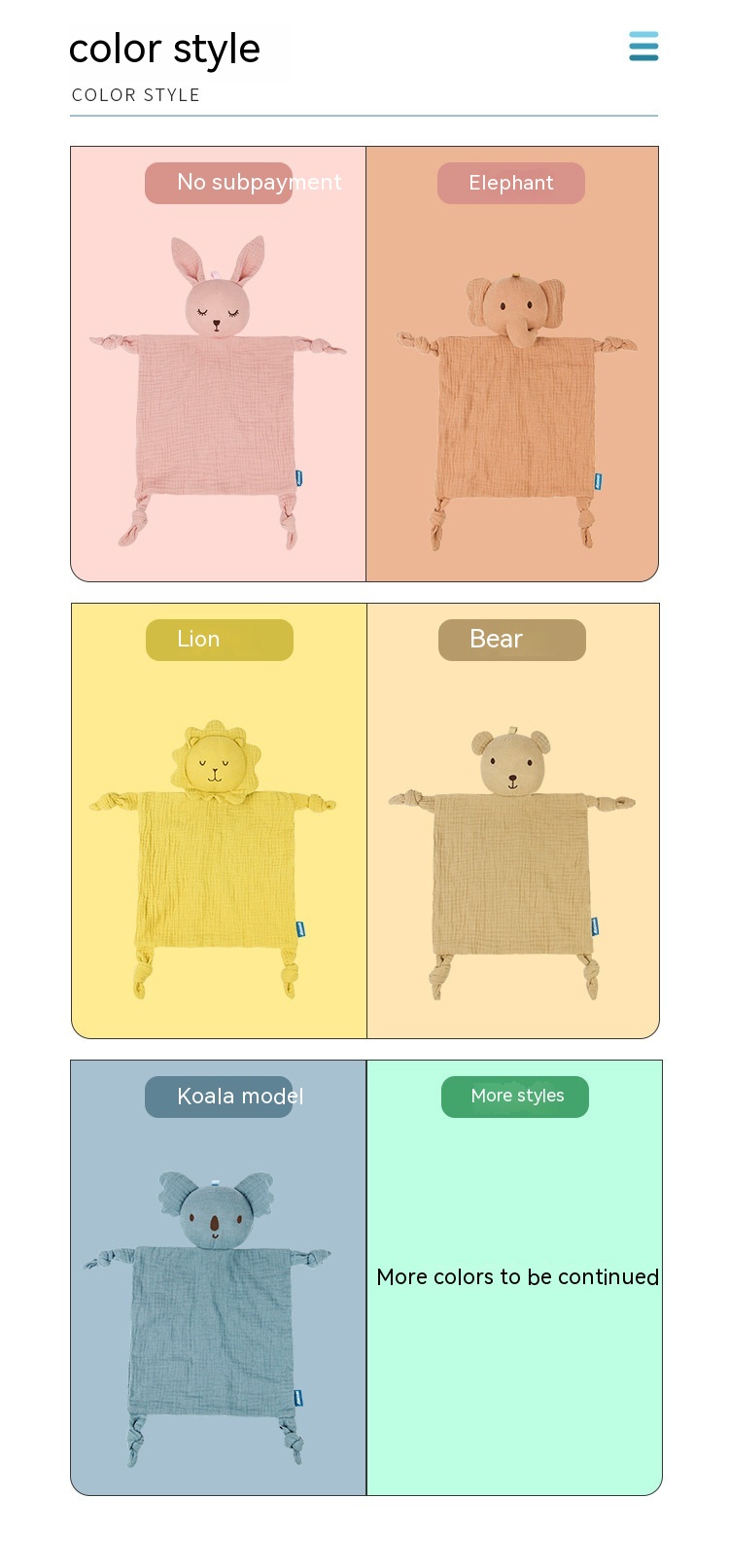 Colors: bear, elephant, rabbit, lion, koala