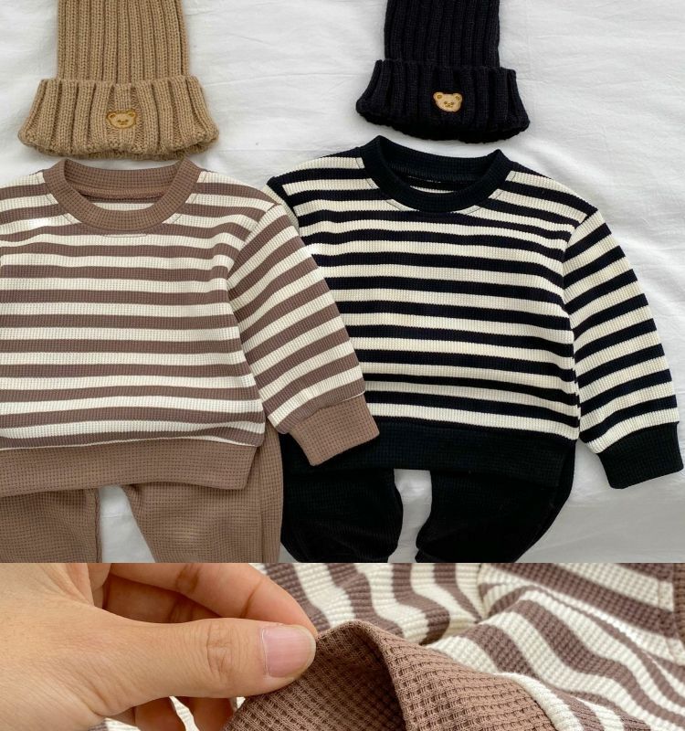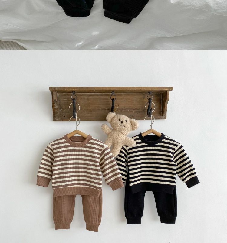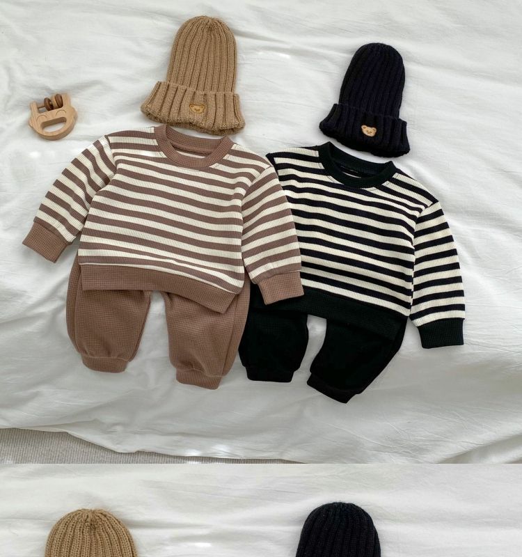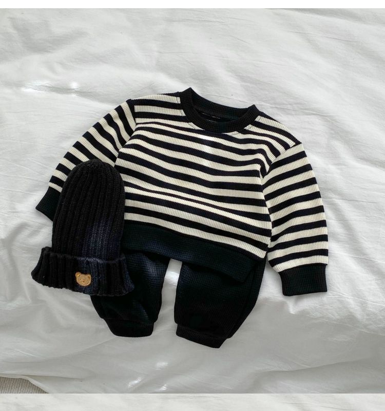 Baby Color Matching Striped Long-sleeved Top Pants Suit
