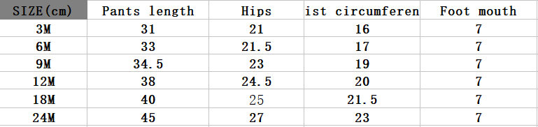 3M (52cm), 6M (56cm), 9M (73cm), 12M (80cm), 18M (85cm), 24M (90cm)