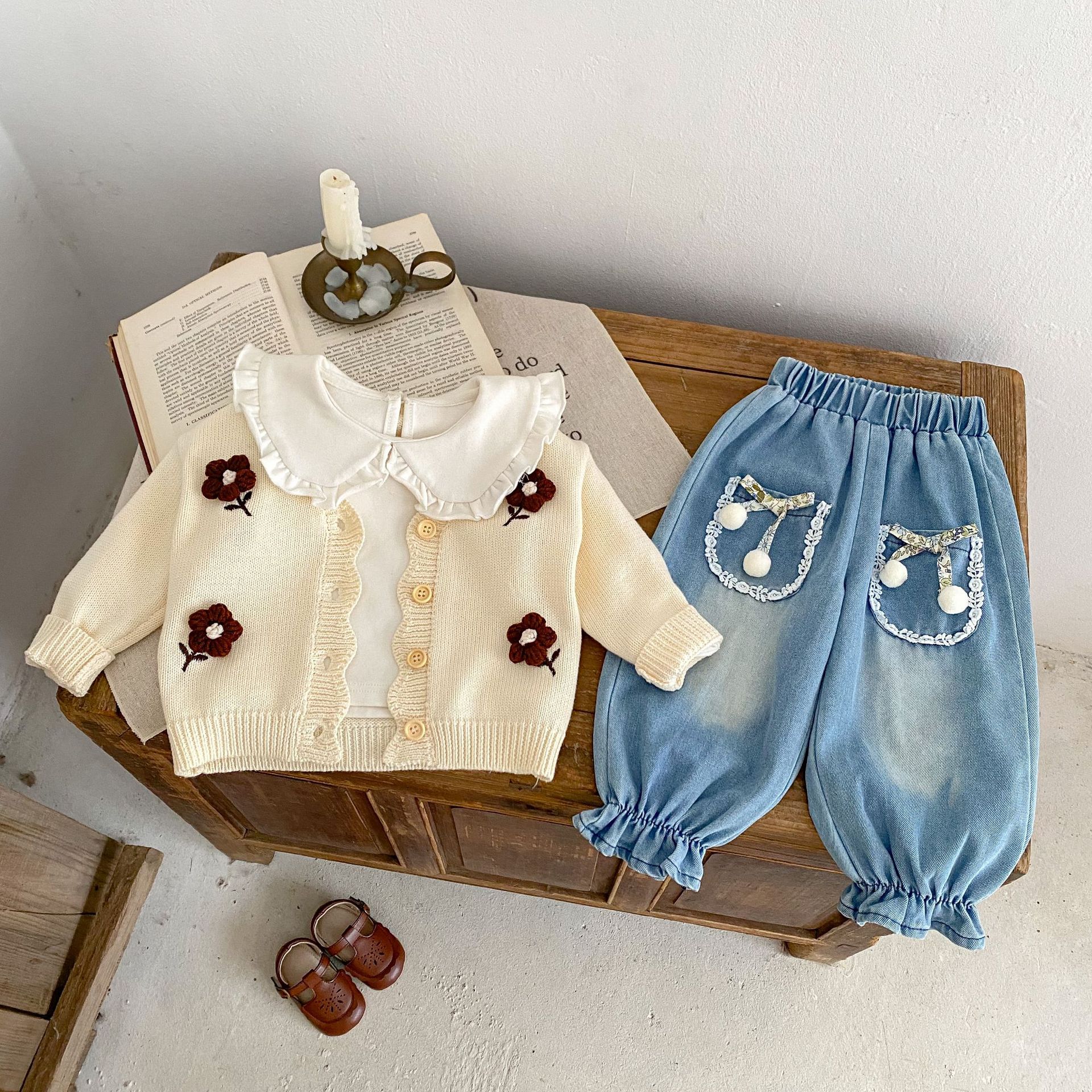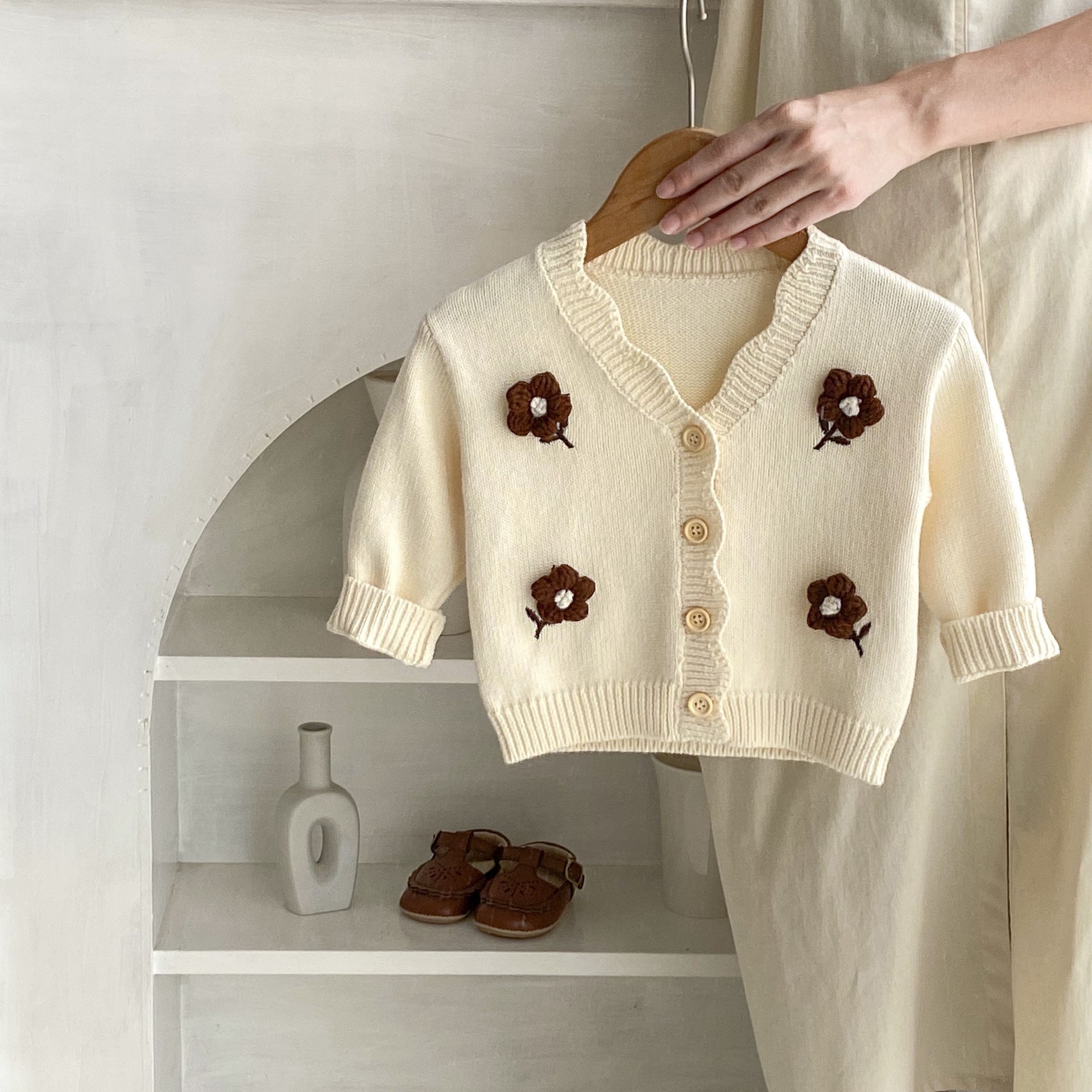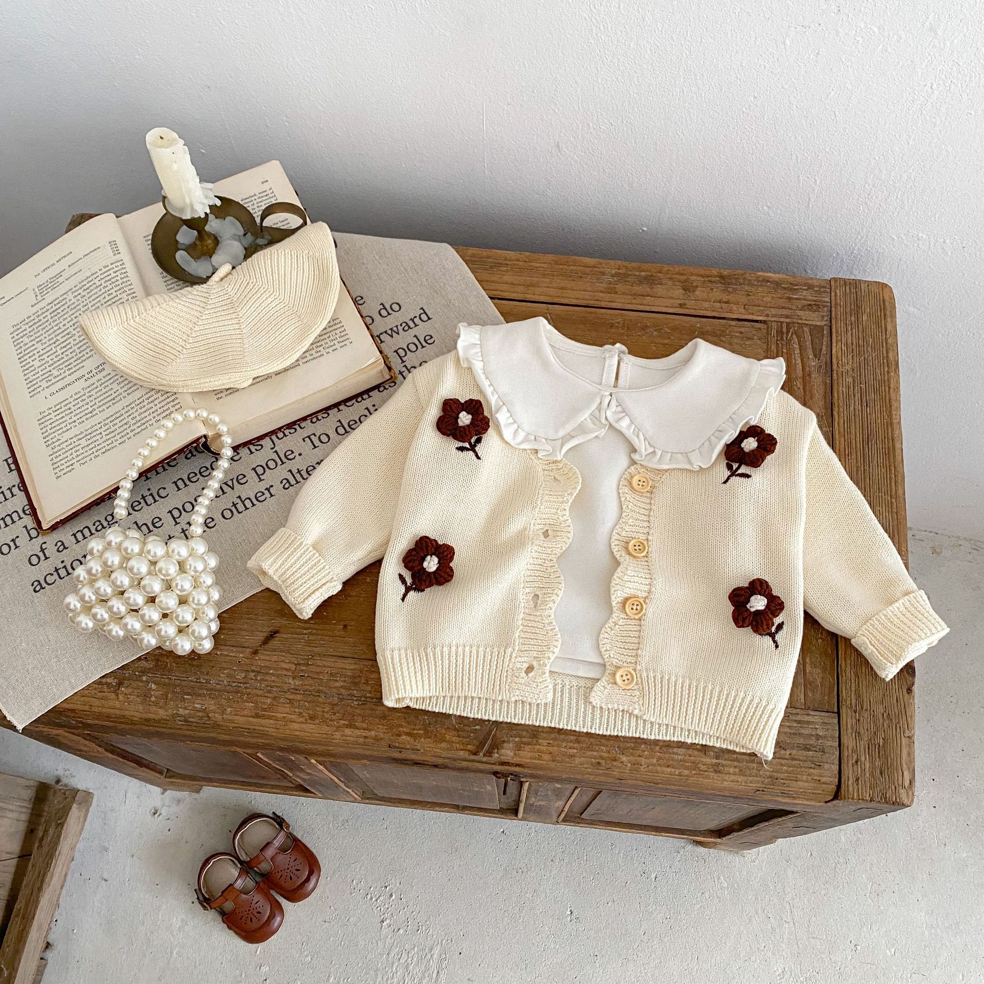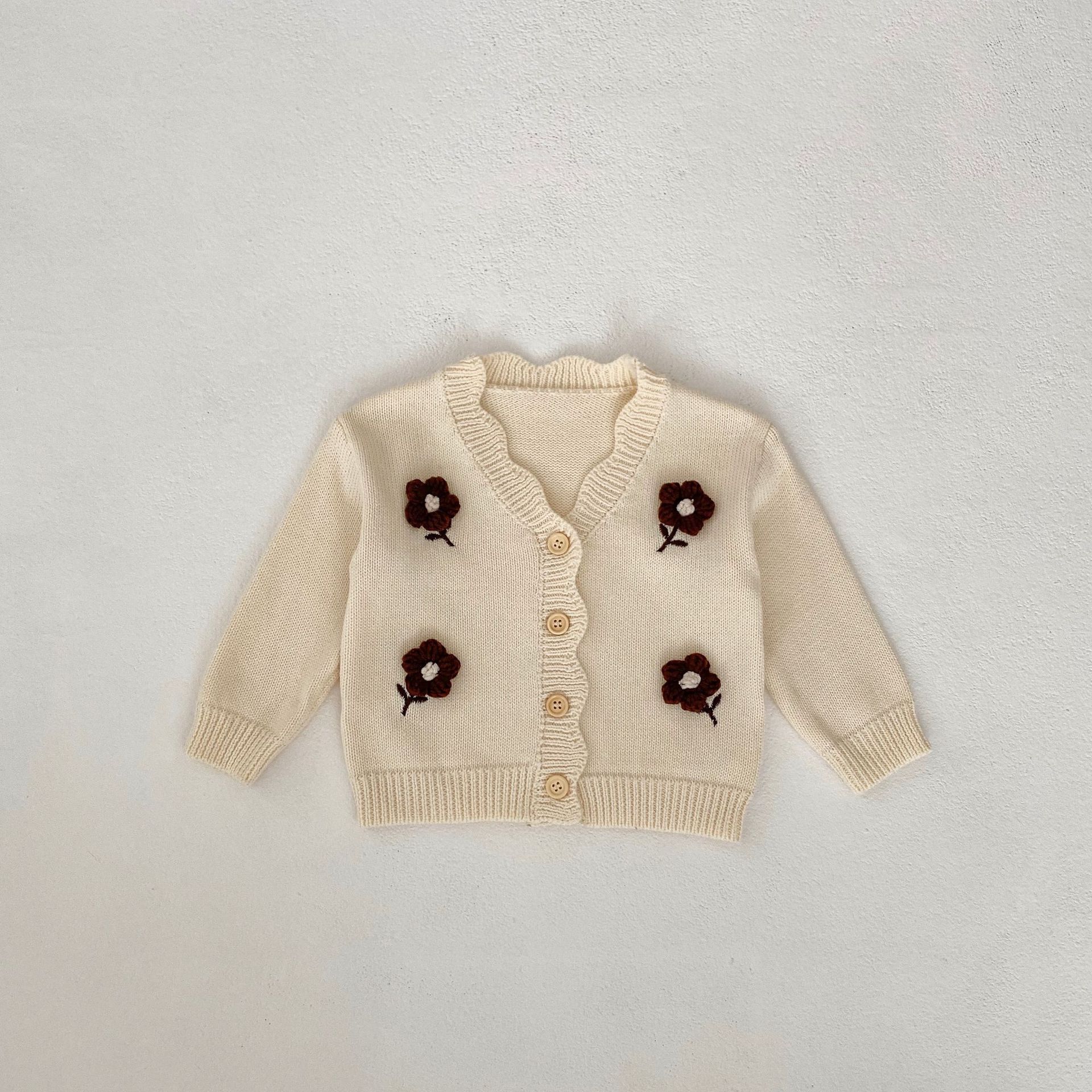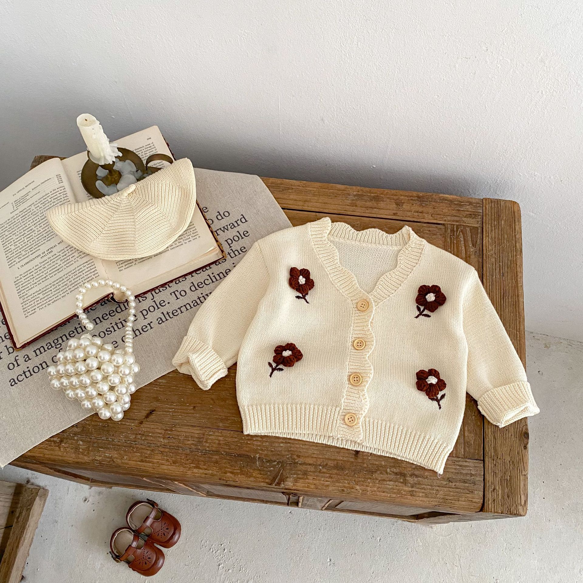 Baby Embroidered V-neck Knitted Cardigan Long-sleeved Sweater