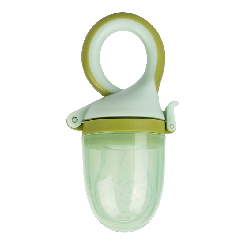 The silicone mesh bag is designed for babies to bite, filled with fresh fruits and vegetables,