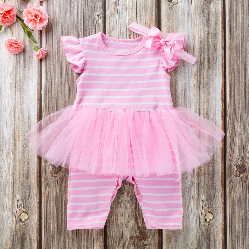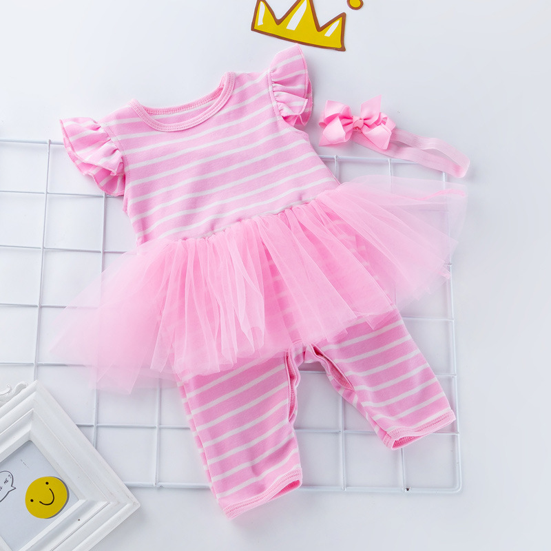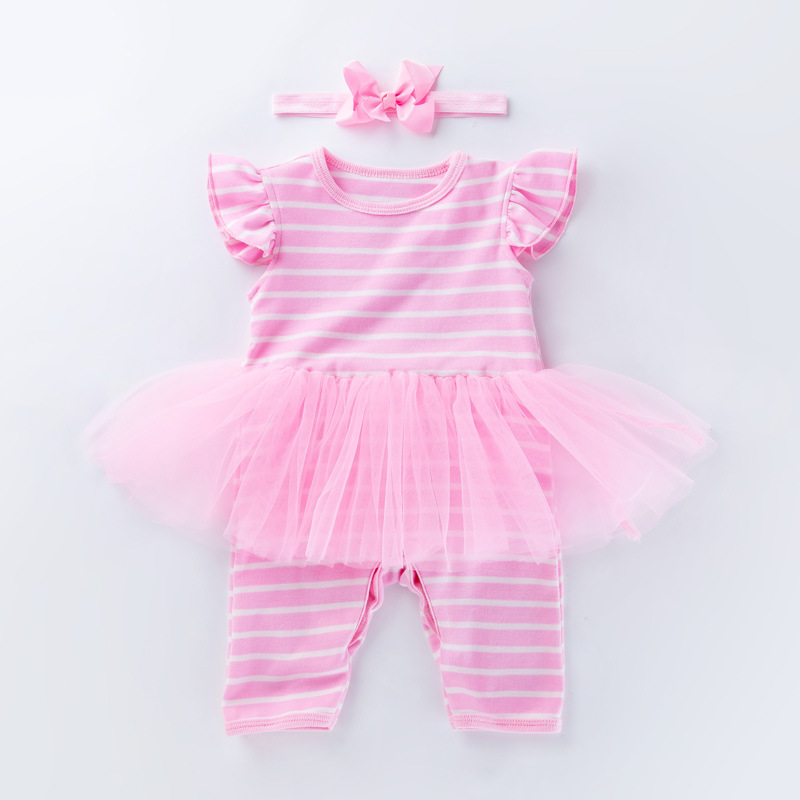 Baby Girl Combed Cotton Striped One-piece Baby One-piece