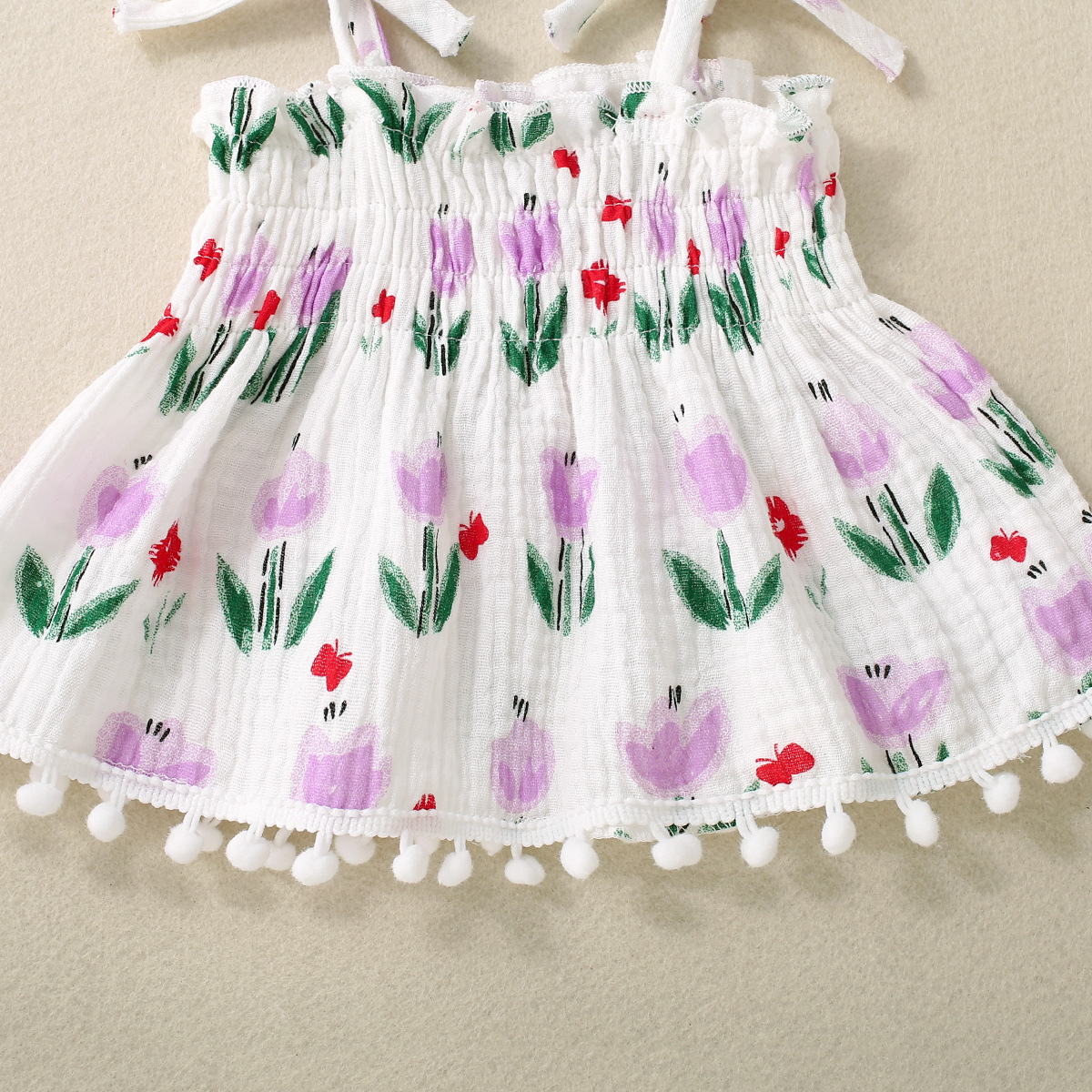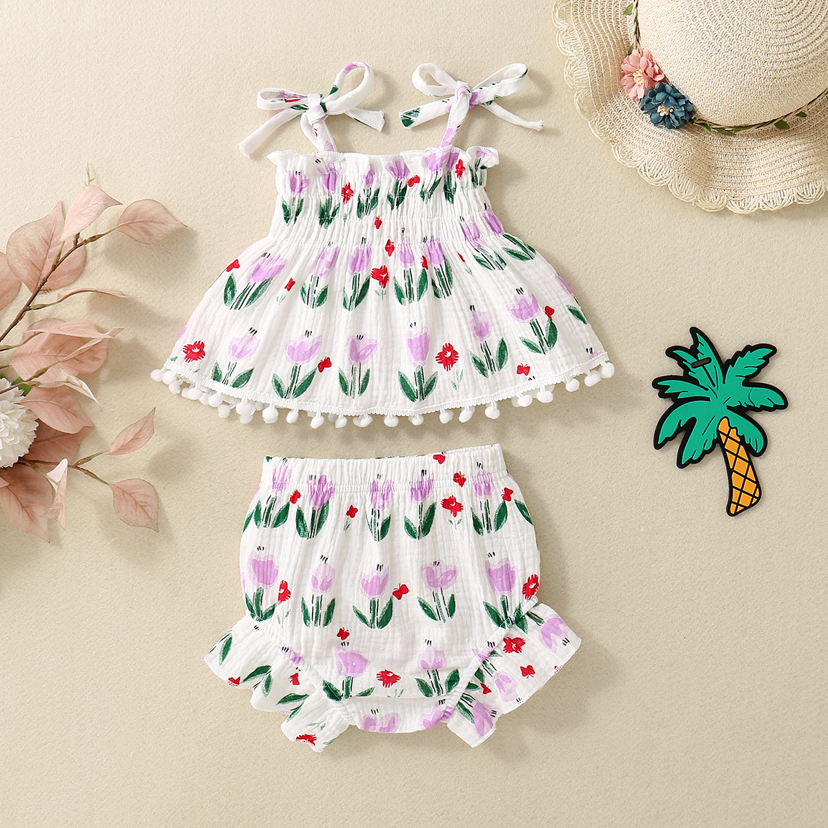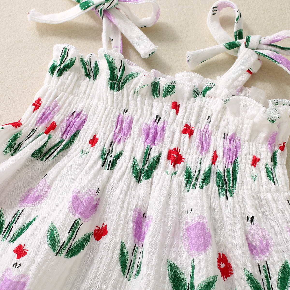 Color: apricot, yellow flower, pink flower, light purple flower