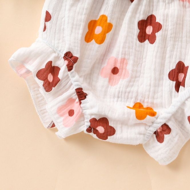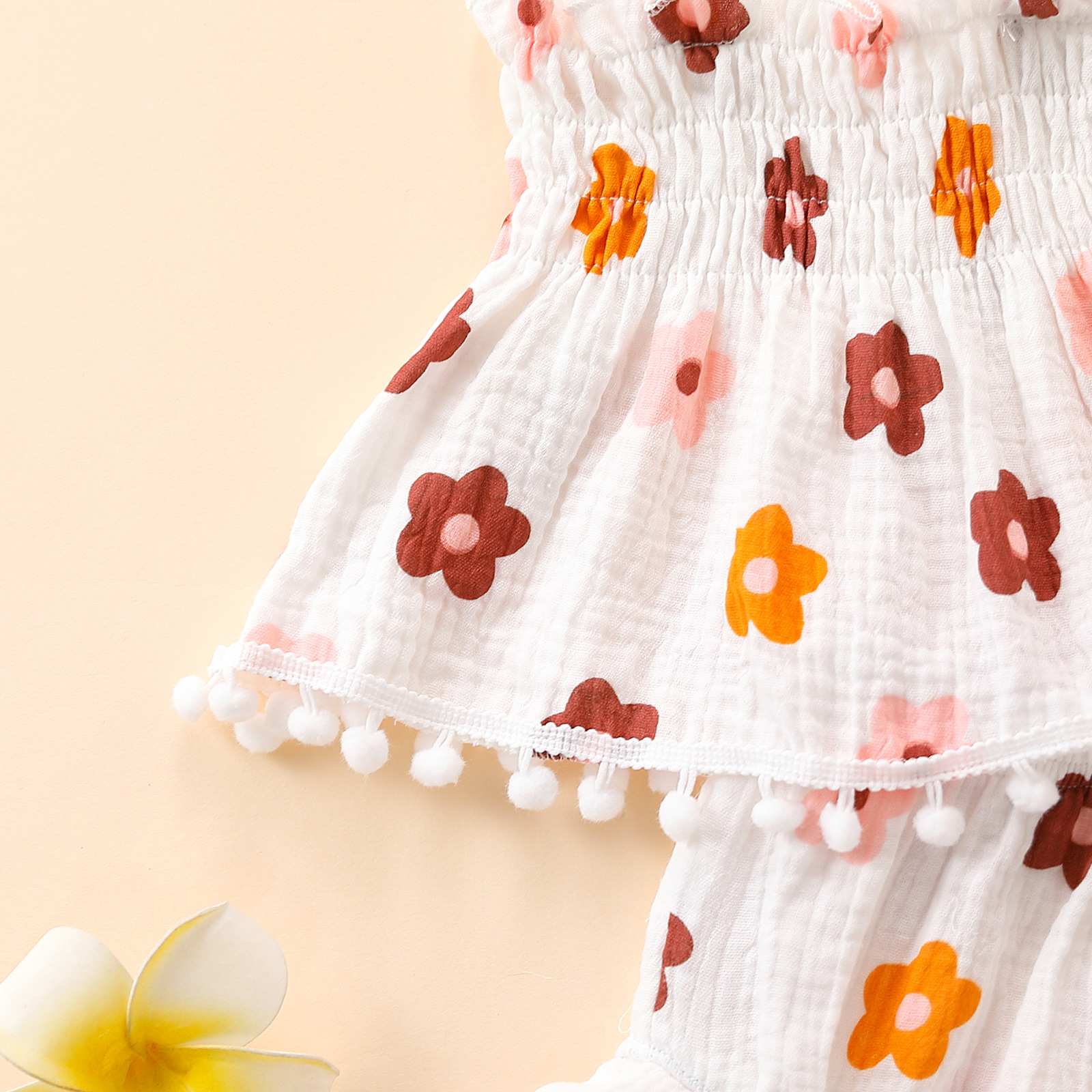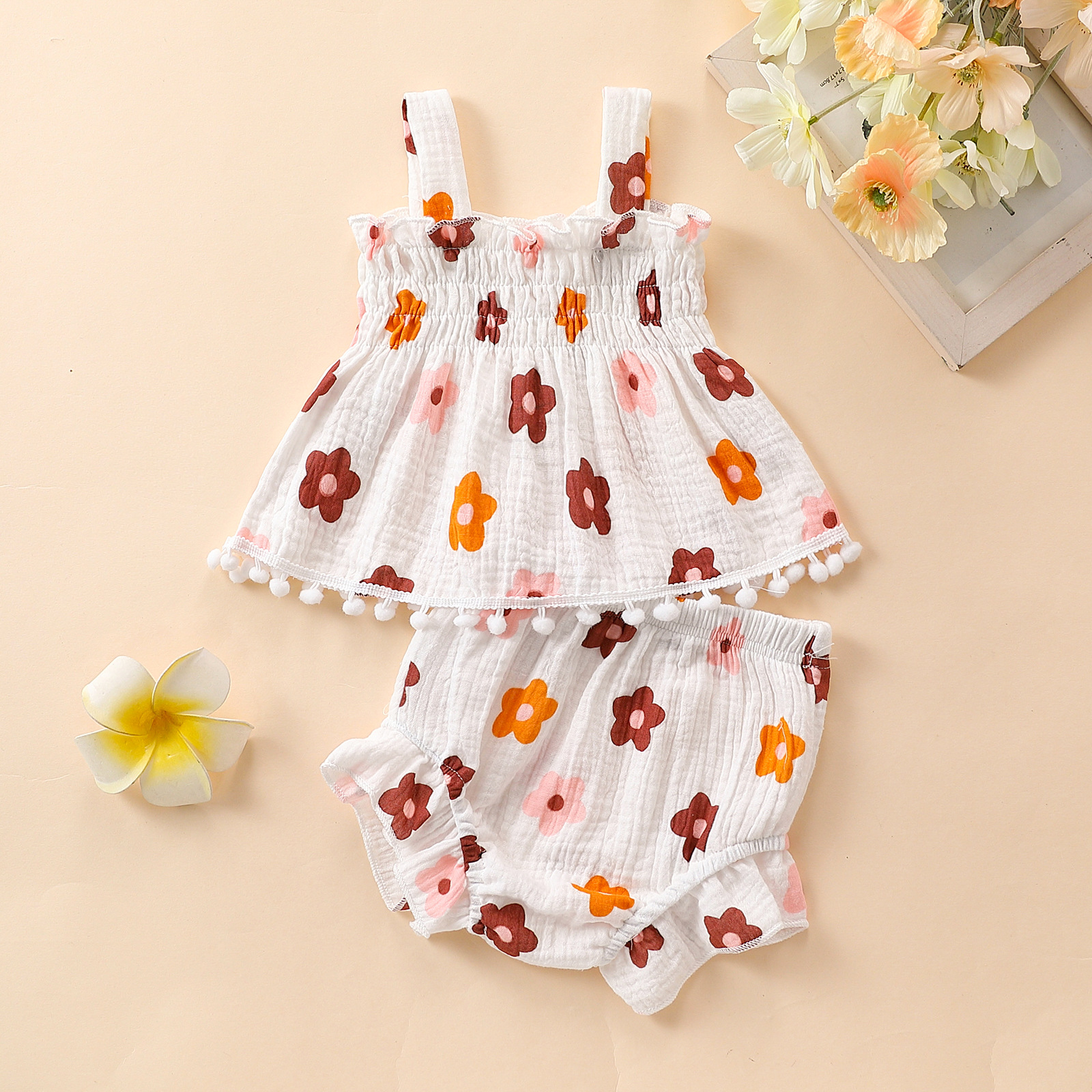Baby Girl Cute Flowers Sling Half-length Lace Skirt Shorts Two-piece Suit