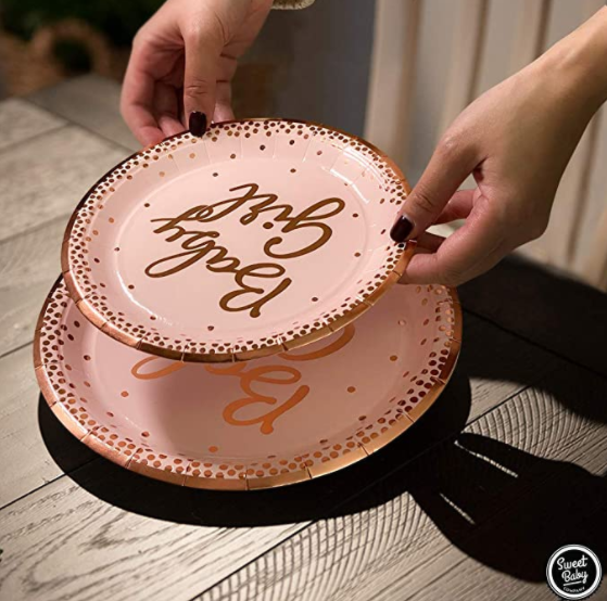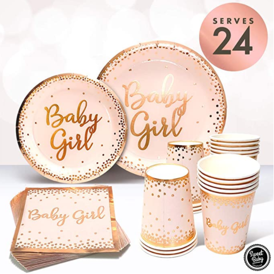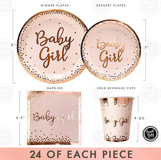 WOMAN OWNED BUSINESS: Sweet Baby Company is a self-financed, woman owned company. All Sweet Baby Co. products are professionally designed and tested with love. There is no risk when purchasing this PREMIUM QUALITY girl baby shower tableware set